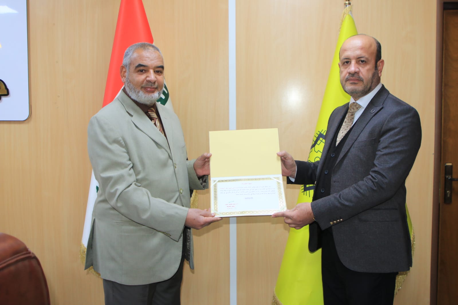 كرم الاستاذ الدكتور وعد محمود رؤوف رئيس جامعة تكريت السيد سامي محمود خلف الموظف على ملاك رئاسة جامعة تكريت لبلوغه السن القانوني اذ تم تكريمه بكتاب شكر وتقدير تثمينا لتفانيه واخلاصه في العمل خلال مدة خدمته التي اتسمت بتحمل المسوؤلية والامانة ، وقال السيد رئيس الجامعة خلال التكريم " اننا اليوم نودع خيرة موظفينا ولايسعنا الا نشكر الخدمة الجليلة التي قدمتها لهذه الجامعة خلال مسيرتك الطويلة ستترك فراغا بيننا لكنك ستبقى في قلوب الجميع مثالا حقيقاً لتفانيك واخلاصك اتمنى لك الموفقية ".