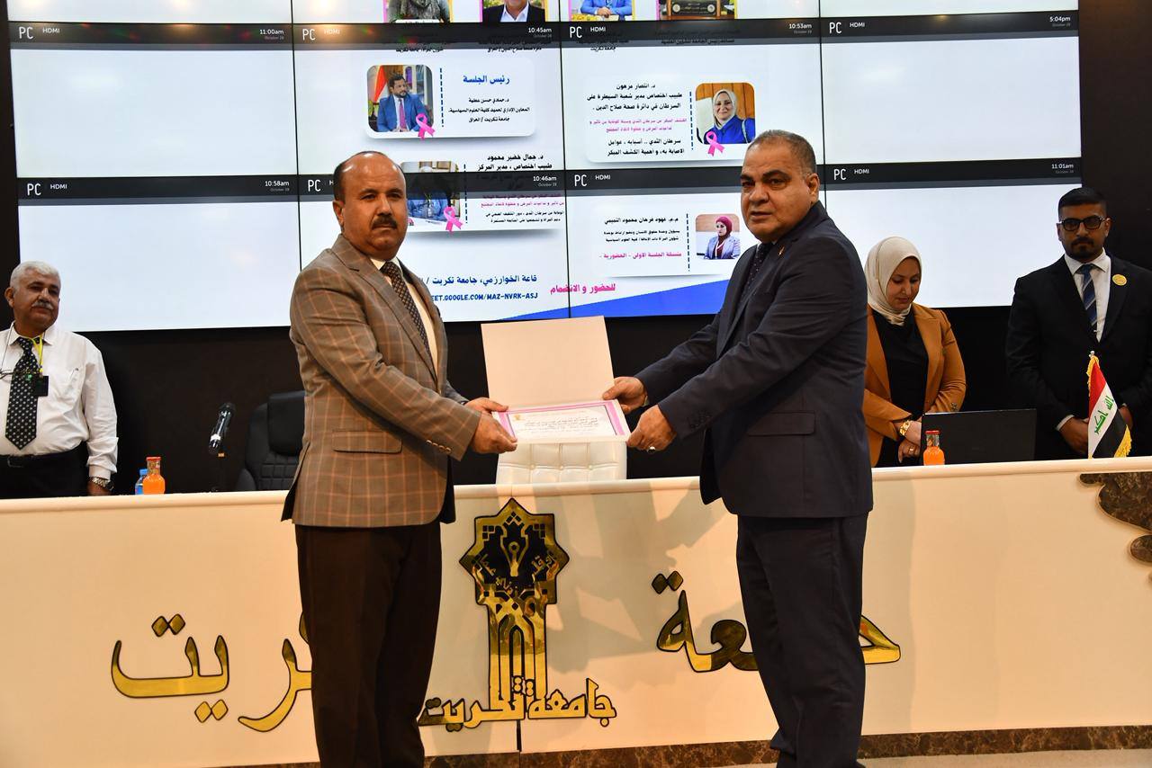 برعاية السيد رئيس جامعة تكريت الأستاذ الدكتور وعد محمود رؤوف، وبإشراف السيد مساعد رئيس الجامعة للشؤون العلمية الأستاذ الدكتور حسن حسين إبراهيم وبمتابعة عميد كلية العلوم السياسية الأستاذ الدكتور قاسم علوان سعيد، نظّمت وحدة شؤون المرأة في رئاسة الجامعة بالتعاون مع مكتب رئيس الوزراء / اللجنة الوطنية الدائمة للتوعية والإرشاد المجتمعي ودائرة صحة صلاح الدين، وبمشاركة جامعات ومؤسسات علمية عربية ودولية رصينة، الملتقى الدولي العاشر المدمج لمواجهة سرطان الثدي، والموسوم “من المعرفة إلى الكرامة” تحت شعار “من الألم يولد المعنى”، وذلك بمناسبة أكتوبر الوردي.