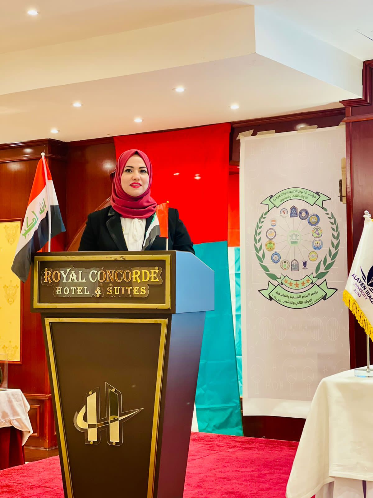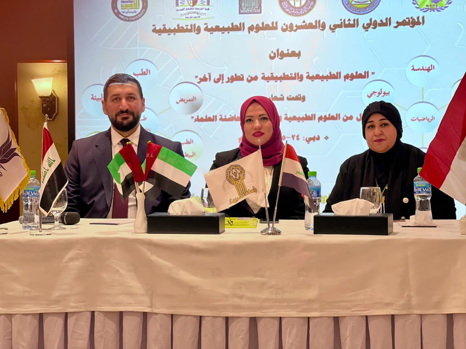 شاركت كلية التربية للعلوم الصرفة بجامعة تكريت في فعاليات افتتاح المؤتمر العلمي الثاني العشرون للعلوم الطبيعية والتطبيقية والذي اقيم في دولة الامارات العربية و لمدة يومان، بعنوان ( العلوم الطبيعية والتطبيقية من تطور الى اخر) هدف المؤتمر الذي ترأسة الاستاذ الدكتور غسان عزالدين عارف التدريسي بكلية التربية الصرفة الى تعزيز دور العلوم التطبيقية في خدمة المجتمع وايجاد الحلول لمشكلاته وتلبية احتياجاته، واتاحة الفرصة للباحثين بالجامعات المحلية والعربية والعالمية والمهتمين بمجالات العلوم والتكنولوجيا للقاء والتحاور وتبادل المعارف والخبرات والتجارب في المجالات العلمية المختلفة والقضايا البحثية أضافة الى السعي لتقديم الأفضل والأحدث من أعمال علمية وبحثية و التأسيس لعمل مستقبلي دؤوب بشراكة مؤسسات وجامعات عالمية رصينة و تيسير ما يمكن تيسيره من خدمة الباحثين لتذليل الصعاب أمامهم. واوضح الاستاذ الدكتور علي عبدالمجيد شهاب عميد الكلية خلال الكلمة التي القاها نيابتاً عنه الاستاذ المساعد الدكتور ميلاد عدنان مزهر معاون العميد للشؤون ان هذا المؤتمر والذي اقيم برعاية 15 مؤسسة علمية ومن ضمنها كلية التربية للعلوم الصرفة بجامعة تكريت يهدف إلى تشجيع دور البحث العلمي التطبيقي في مجال العلوم التطبيقية والطبيعية وبيان ممارسات البحث العلمي في هذا المجال ودورها في خدمة المجتمع مضيفاً بأن المؤتمر تشرف عليه لجنة علمية متخصصة بشاركة 37 عضوا متخصص من مختلف الجامعات والمعاهد العراقية و يساهم في تبادل الخبرات العلمية والبحثية .