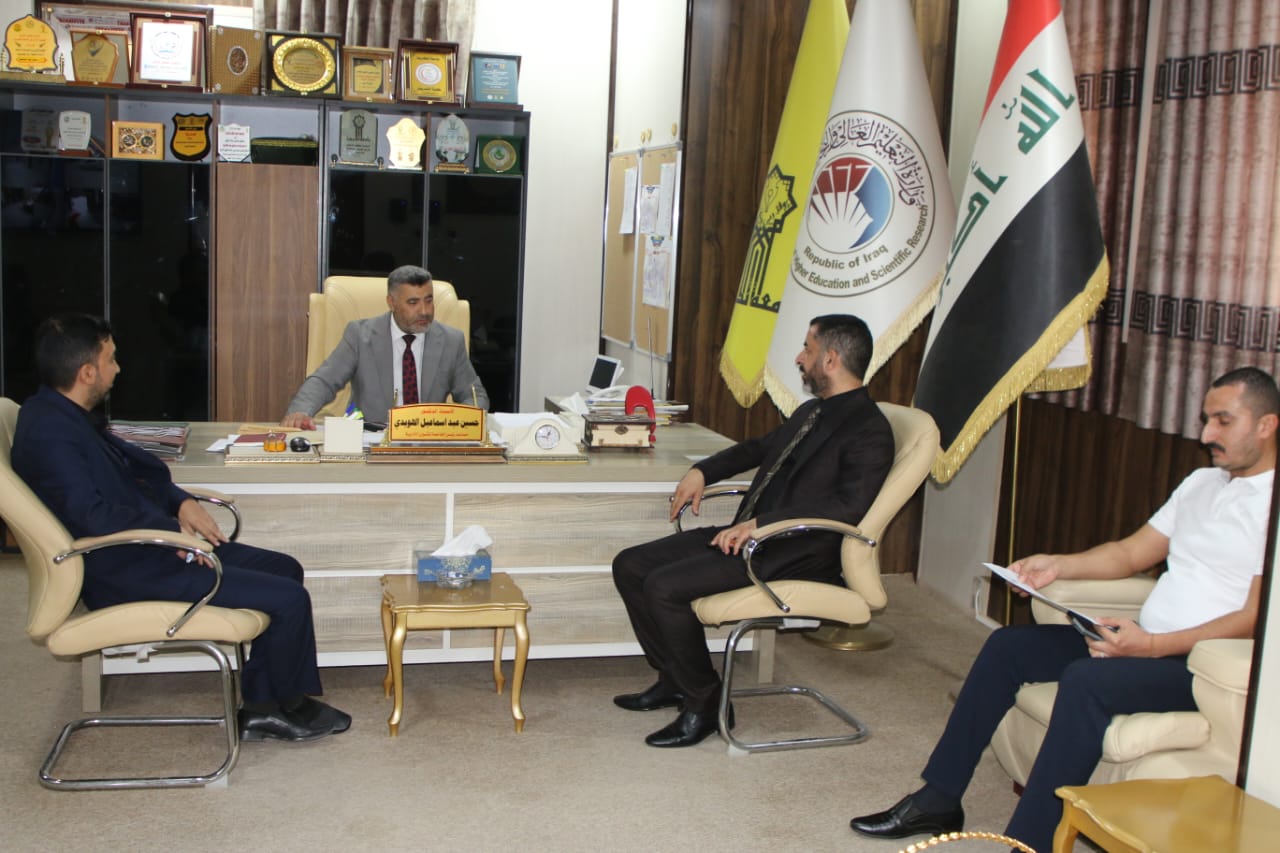 استقبل مساعدا رئيس جامعة تكريت للشؤون العلمية والإدارية وفداً من الامانة العامة للعتبة العباسية المقدسة، في زيارة علمية ثقافية تهدف إلى تعزيز التعاون المشترك بين الجانبين، ولا سيما في مجالات تطوير المستودع الرقمي العراقي للإطاريح والرسائل الجامعية.
