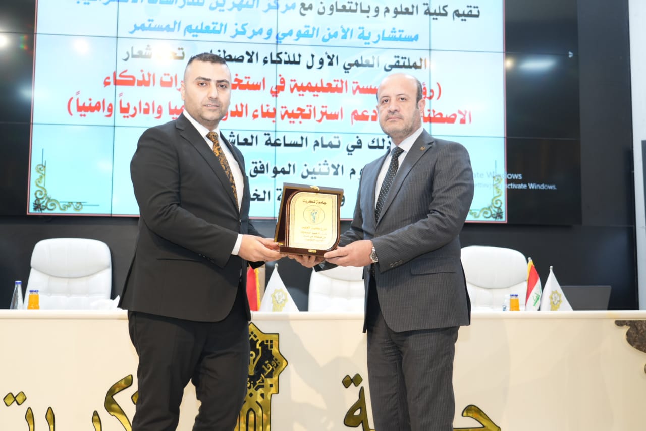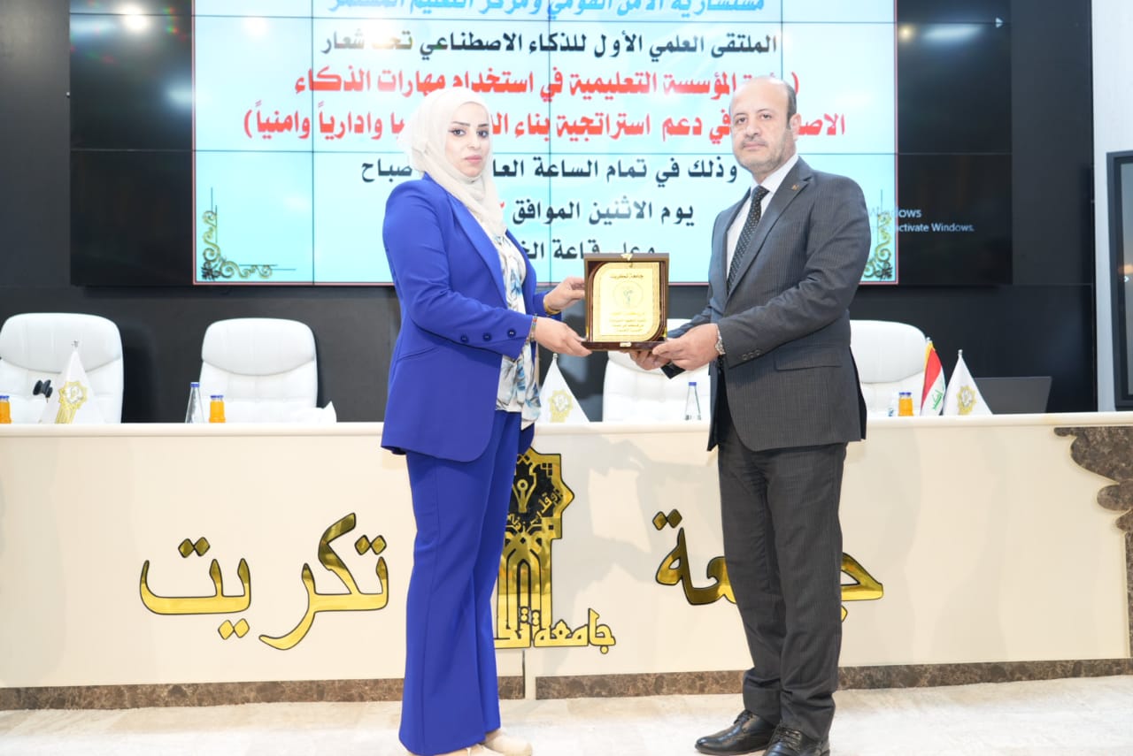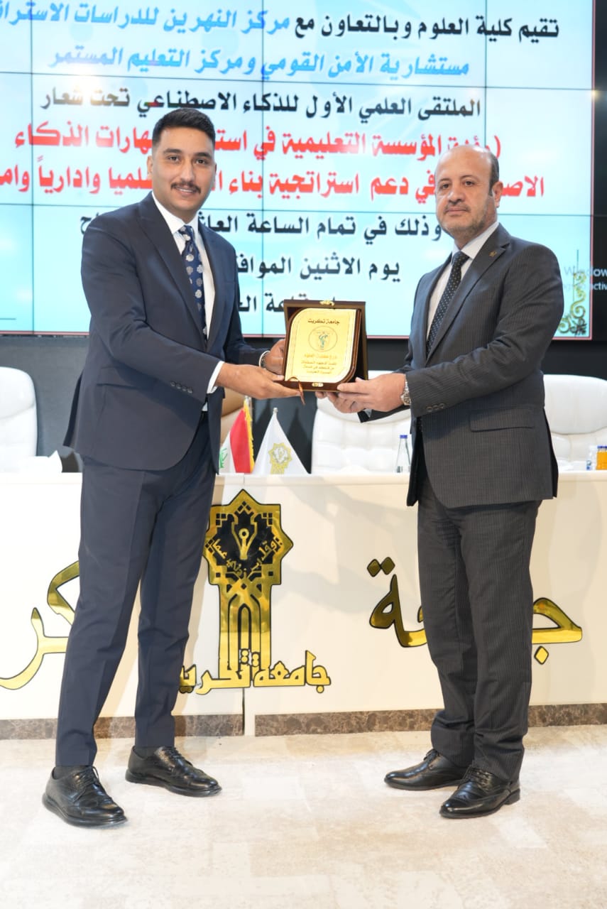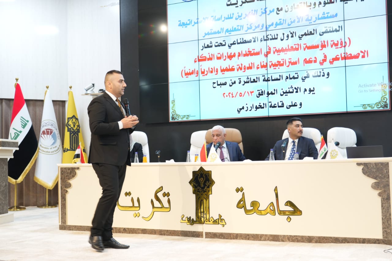 برعاية الأستاذ الدكتور وعد محمود رؤوف رئيس جامعة تكريت وبأشراف الاستاذ الدكتور عبدالخالق علوان محيميد عميد كلية العلوم اقامت الكلية بالتعاون مع مركز النهرين للدراسات الاستراتيجية/ مستشارية الامن القومي ومركز التعليم المستمر الملتقى العلمي الاول للذكاء الاصطناعي تحت شعار (رؤية المؤسسة التعليمية في استخدام مهارات الذكاء الاصطناعي في دعم استراتيجية بناء الدولة علميا واداريا وامنيا ) احتضنت فعالياته قاعة الخوارزمي