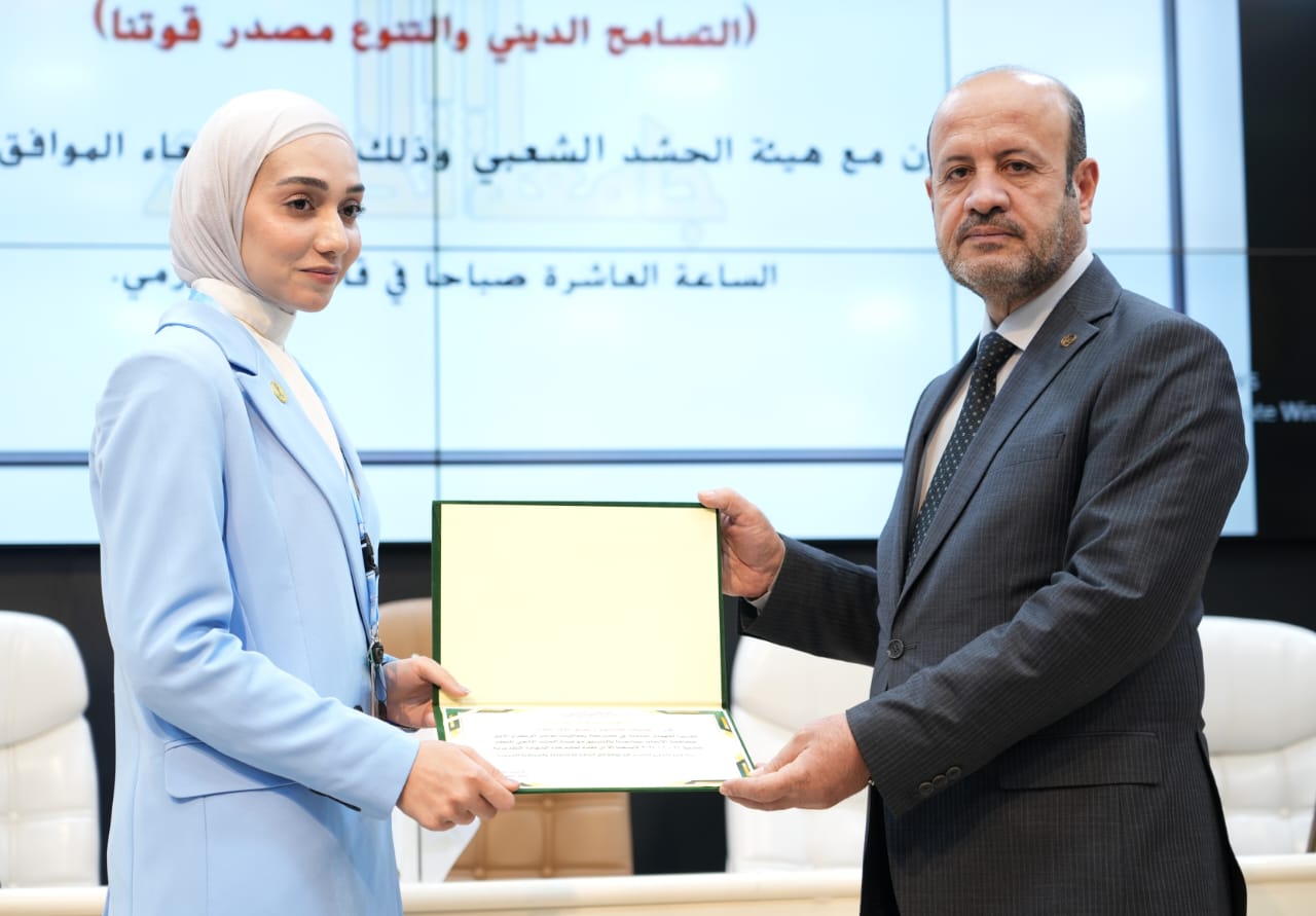من جانبه بين ممثل هيئة الحشد الشعبي السيد محمود مدير مكتب المديرية العامة لمكافحة الارهاب الفكري في صلاح الدين خلال كلمته أهمية المؤتمرات العلمية في وضع الاستراتيجيات التي من شأنها أن تضع خريطة طريق لمواجهة التطرف الفكري وترسيخ قيم الاعتدال والتأسيس لمنظومة قيمية ترسخ السلم المجتمعي المشترك في المجال التوعوي لجميع فئات المجتمع و اعداد جيل جديد متحلي بالثقافة العربية والإسلامية الأصيلة