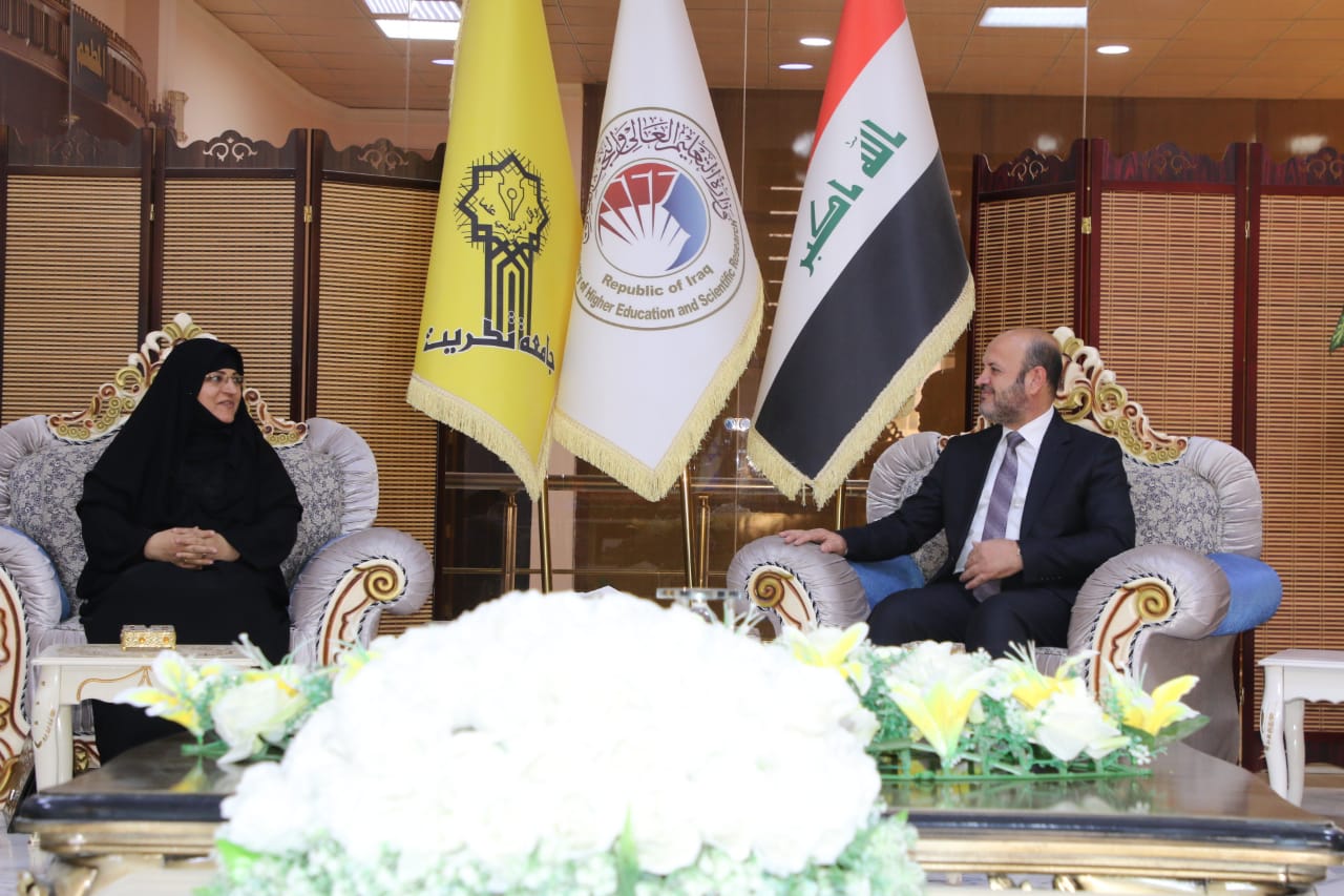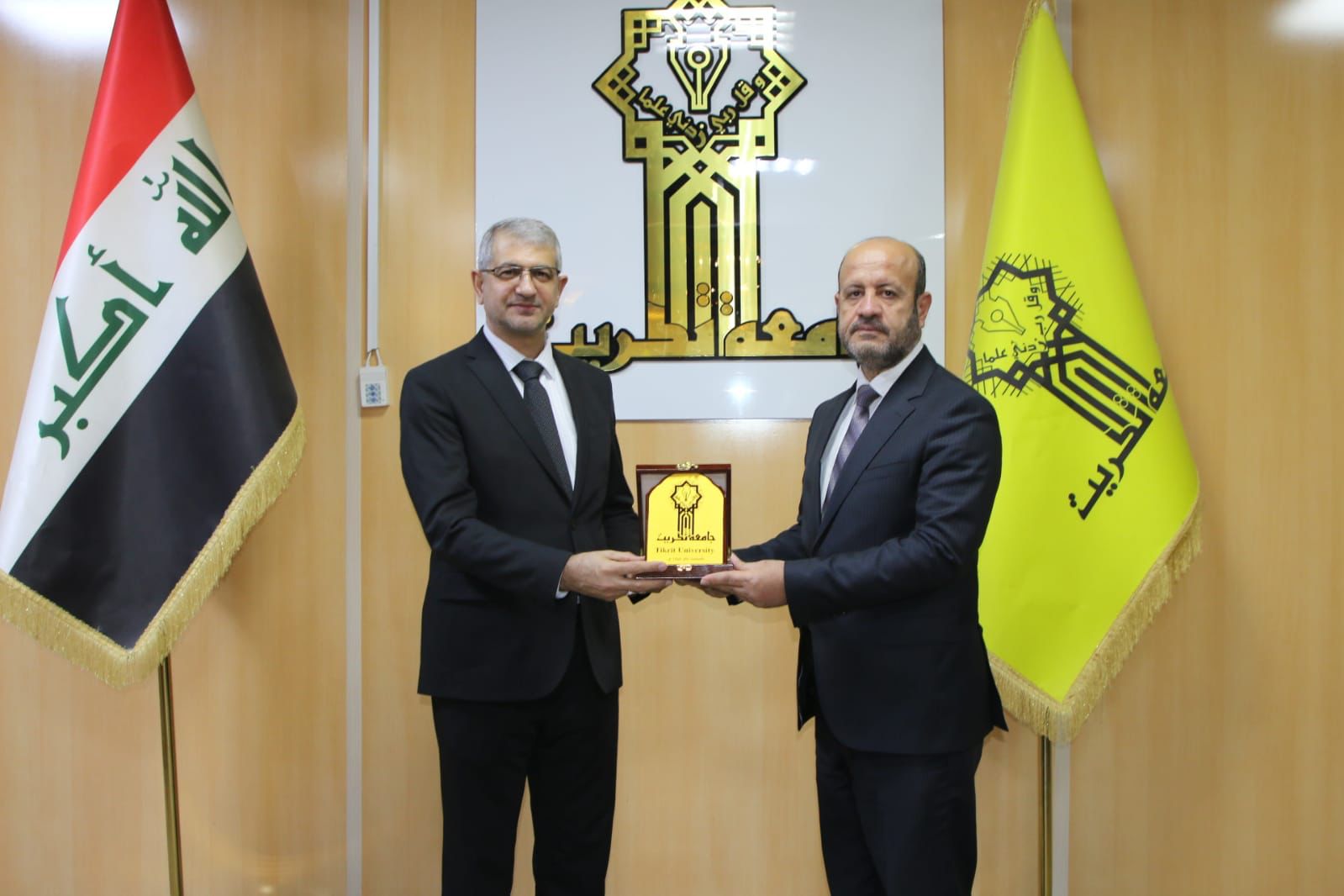 استقبل الاستاذ الدكتور وعد محمود رؤوف رئيس جامعة تكريت في مكتبه الاستاذ الدكتورة زينب عبد الحسين الملا السلطاني رئيس جامعة الزهراء عليها السلام وبعد الترحيب بالاستاذة الضيف تناول الطرفان المواضيع ذات الاهتمام المشترك بين الجامعتين واستمعت الضيف الى شرح عن واقع جامعة تكريت والتطور العلمي والاكاديمي والعمراني فيها، وشملت الزيارة جولة في اروقة الجامعة ضمت كلية طب الاسنان ومختبراتها والاطلاع على المستشفى التعليمي الخاص بها تم بعدها زيارة كلية الصيدلة ومختبراتها ثم الانتقال الى مطبعة الجامعة والاطلاع على عملها وزيارة الملعب الخاص بالجامعة وفي ختام اللقاء والزيارة تم توقيع مذكرة تعاون علمي مشترك بين الجامعتين وتبادل دروع الجامعتين. يذكر ان هذه الزيارة تأتي في اطار سعي الجامعة المستمر لفتح افاق التعاون مع الجامعات والمؤسسات العلمية والاكاديمية والمؤسسات الحكومية بما يخدم المصلحة العامة.
