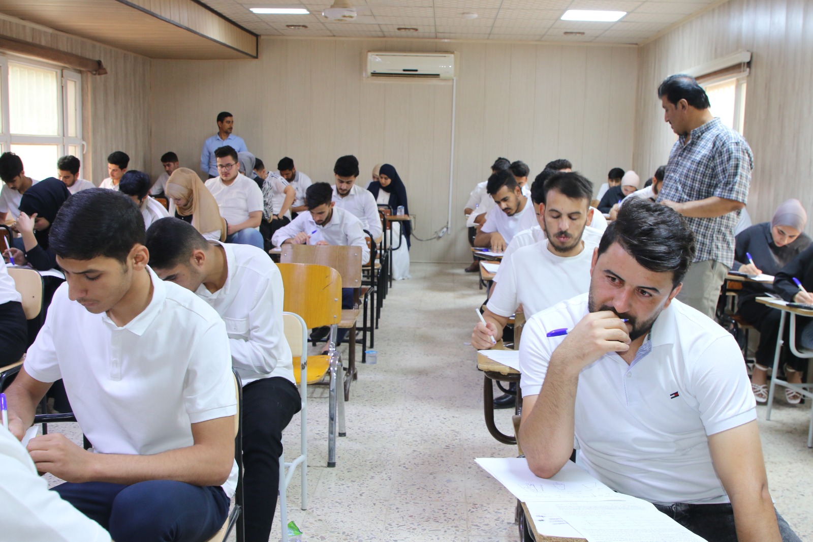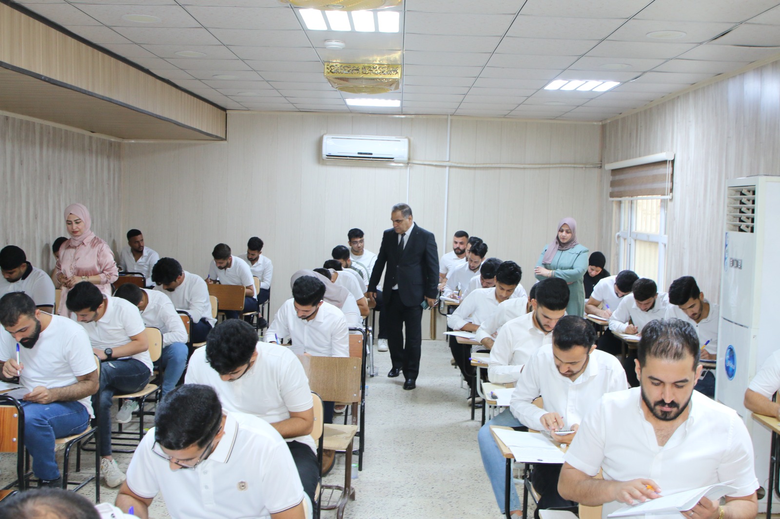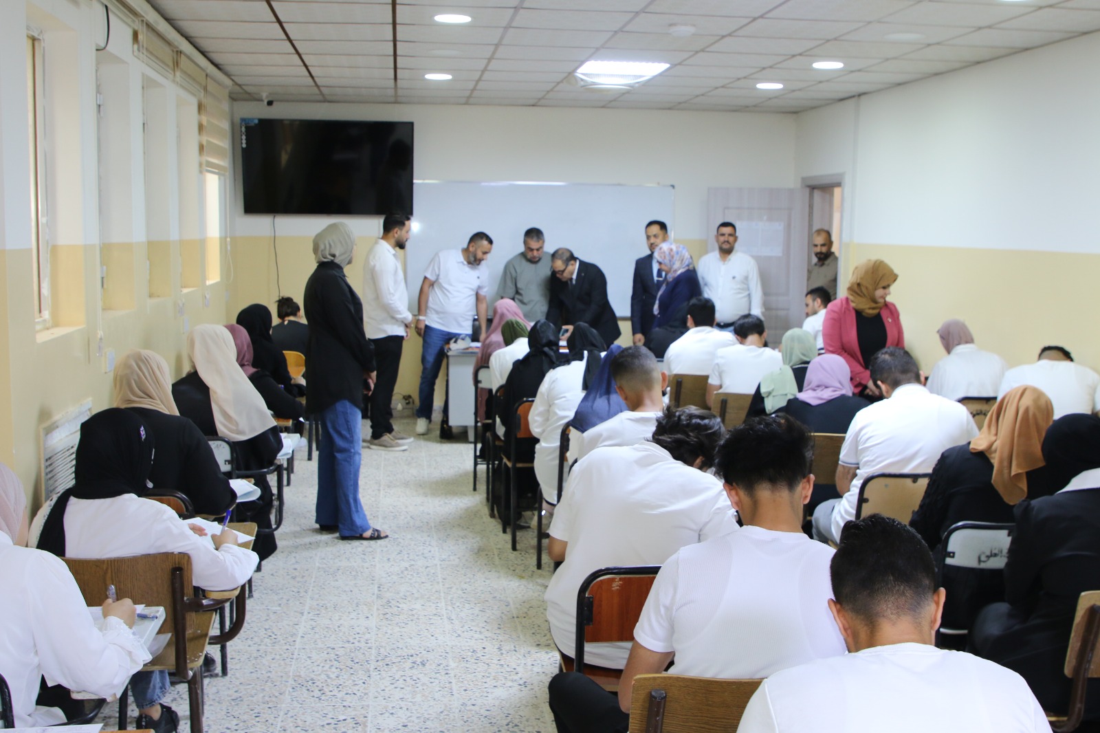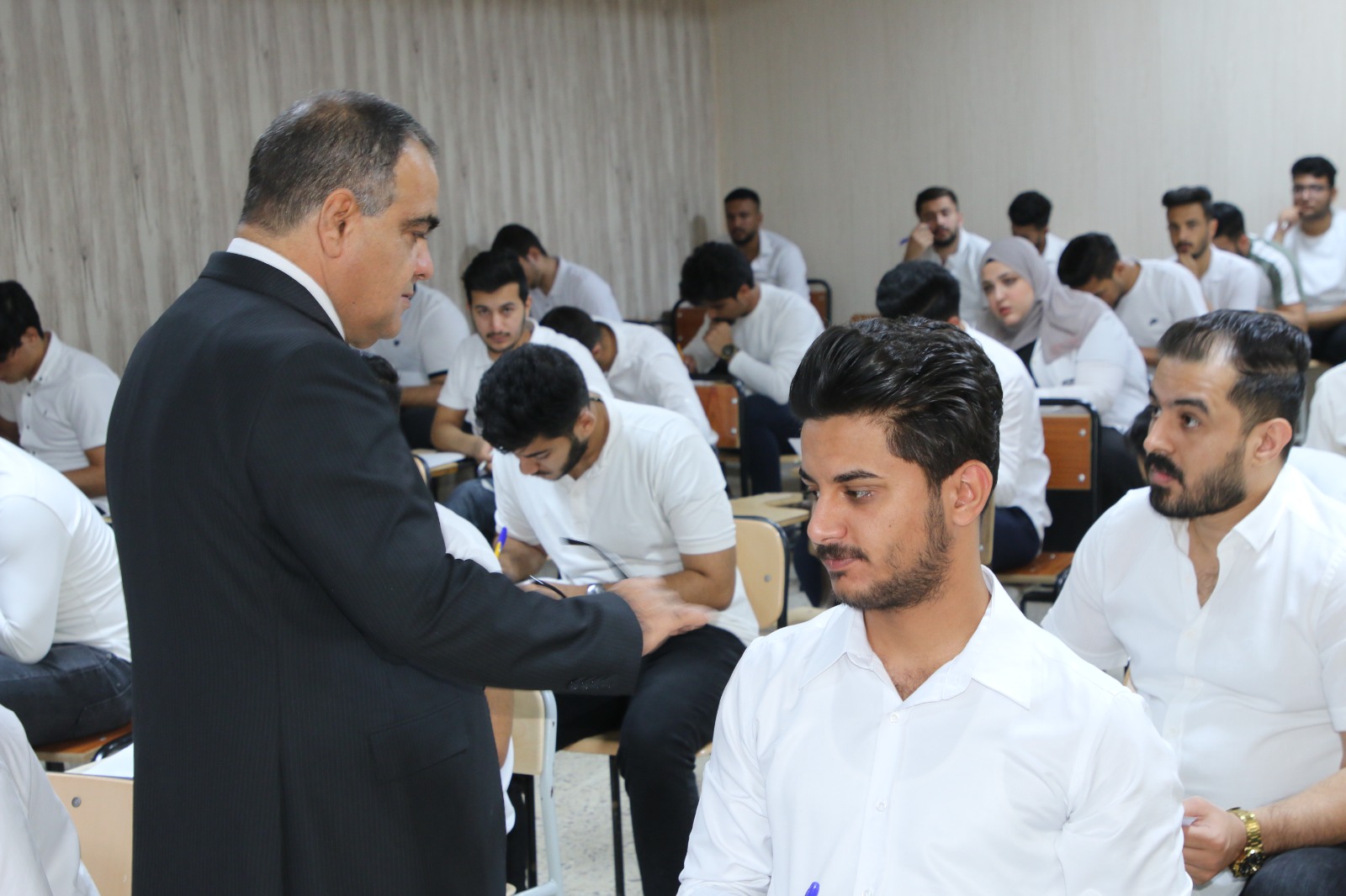 تنفيذا لتوجيهات الاستاذ الدكتور وعد محمود رؤوف رئيس جامعة تكري وضمن جولاته التفقدية في كليات واقسام الجامعة قام الاستاذ الدكتور حسن حسين ابراهيم مساعد رئيس الجامعة للشؤون العلمية بمتابعة سير الامتحانات النهائية في كليتي الهندسة والعلوم حيث تجول في القاعات الامتحانية واطلع على طبيعة الاسئلة ومدى ملائمتها للمناهج الدراسية وتابع مدى انسيابية الاجراءات وسير الامتحانات واجراءاتها واثنى على الجهود المبذولة من قبل عمادة الكليتين في التنظيم والالتزام بالتعليمات وضوابط وتوجيهات وزارة التعليم العالي والبحث العلمي