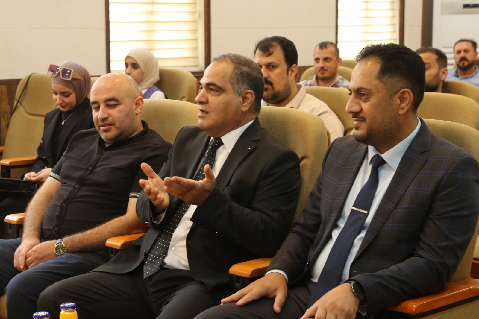 وفي سياق متصل حضر مساعد رئيس الجامعة مناقشة رسالة ماجستير في كلية علوم الحاسوب والرياضيات حيث بارك للطالب المناقش والاستاذ المشرف واشاد بدقة وصواب الملاحظات العلمية للجنة المناقشة.