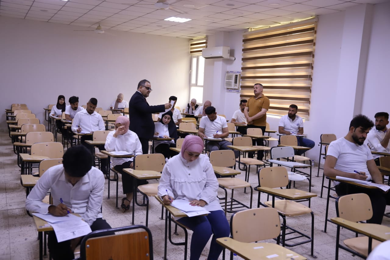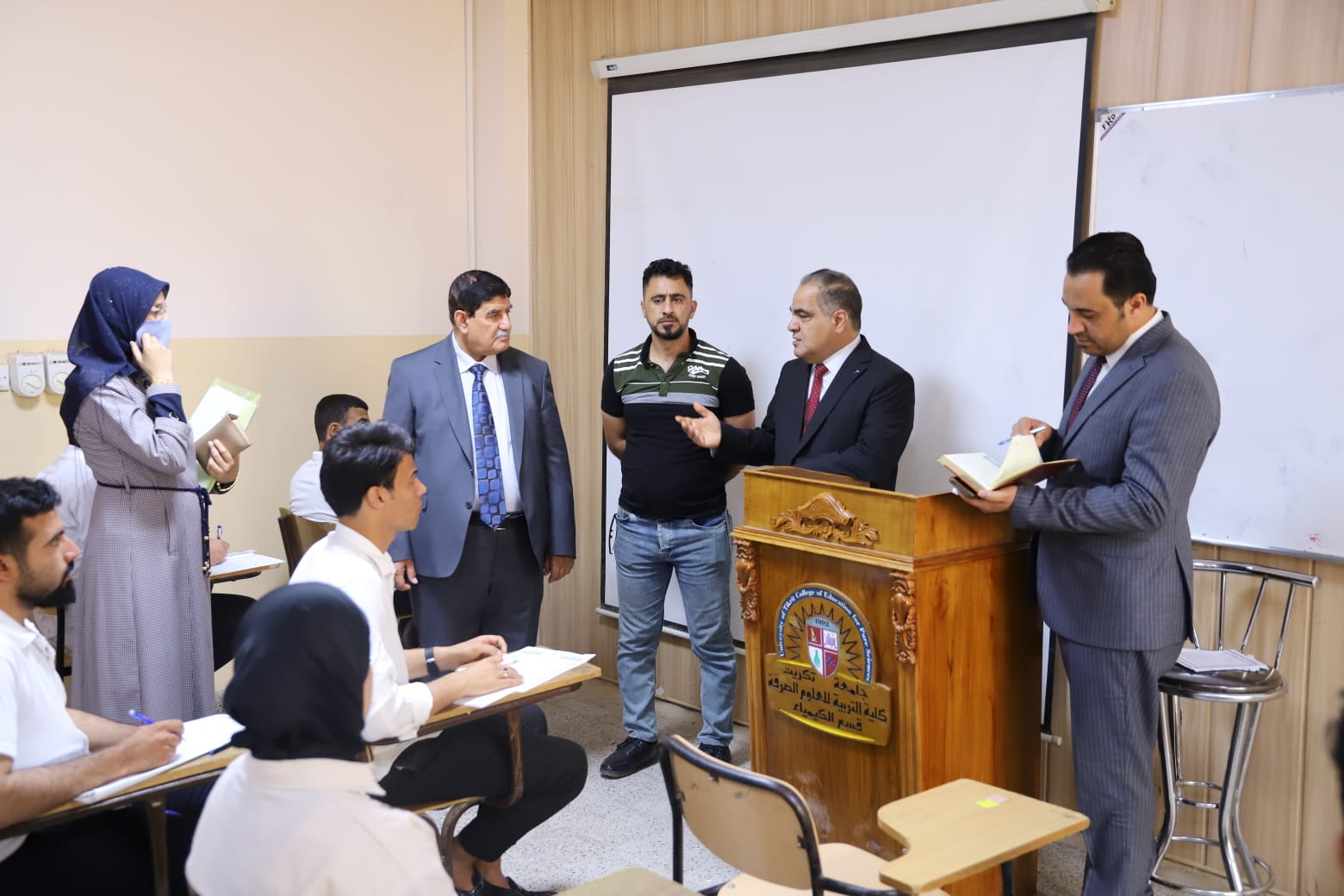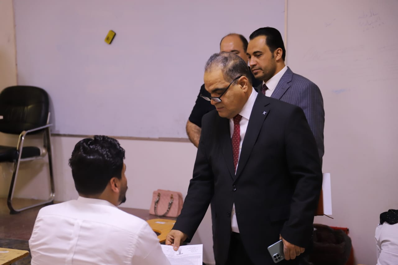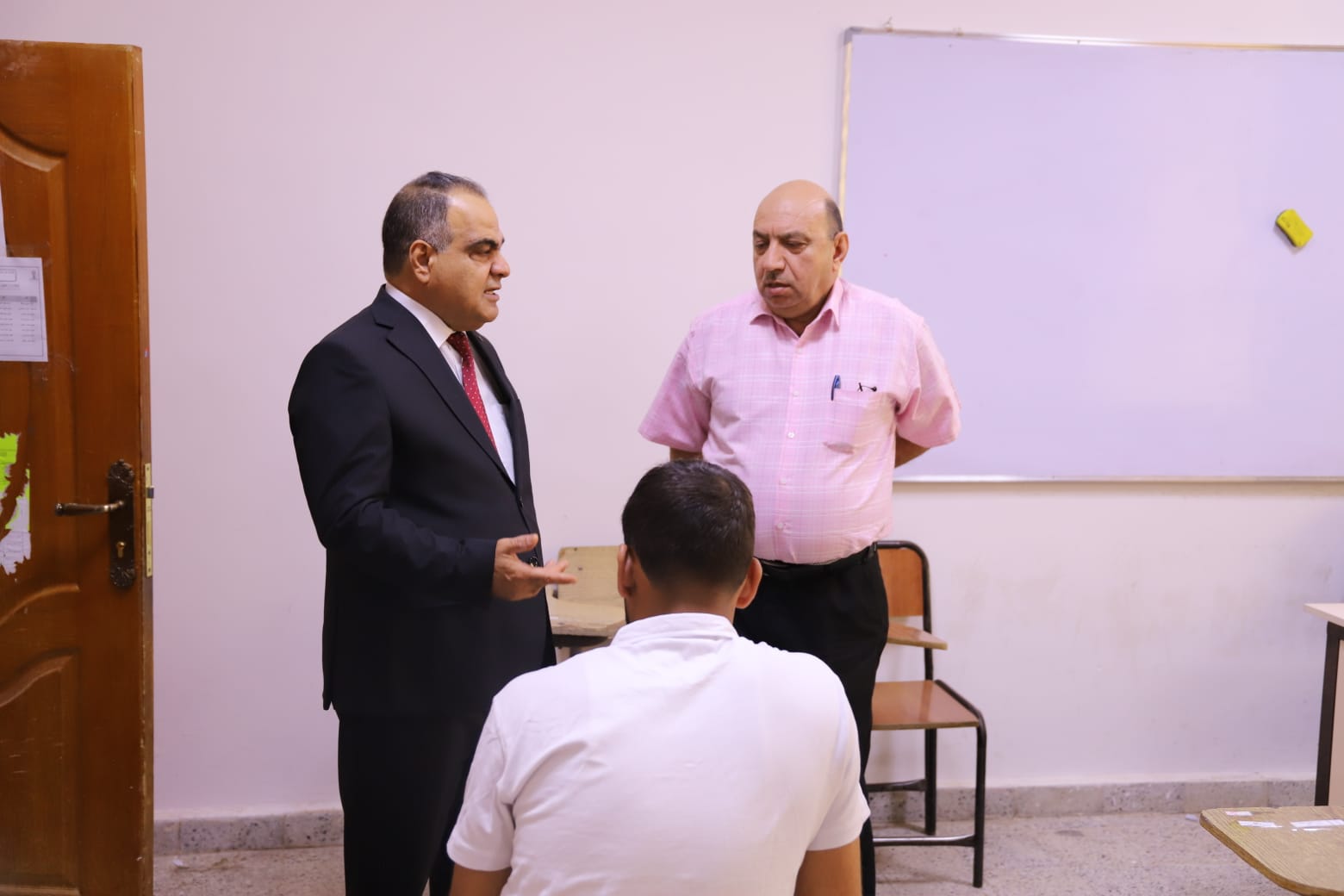 تنفيذا لتوجيهات الاستاذ الدكتور وعد محمود رؤوف رئيس جامعة تكريت تفقد الاستاذ الدكتور حسن حسين ابراهيم مساعد رئيس الجامعة للشؤون العلمية اليوم الاحد الموافق 12/5/2024 سير العلمية النهائية في كليتي التربية للعلوم الانسانية والتربية للعلوم الصرفة حيث تجول داخل القاعات الامتحانية واطلع على طبيعة الاسئلة ومدى ملائمتها للمناهج الدراسية وتابع سلاسة سير الامتحانات واجراءاتها واثنى على الجهود المبذولة من قبل عمادة الكليتين في التنظيم والالتزام بالتعليمات وضوابط وزارة التعليم العالي والبحث العلمي .