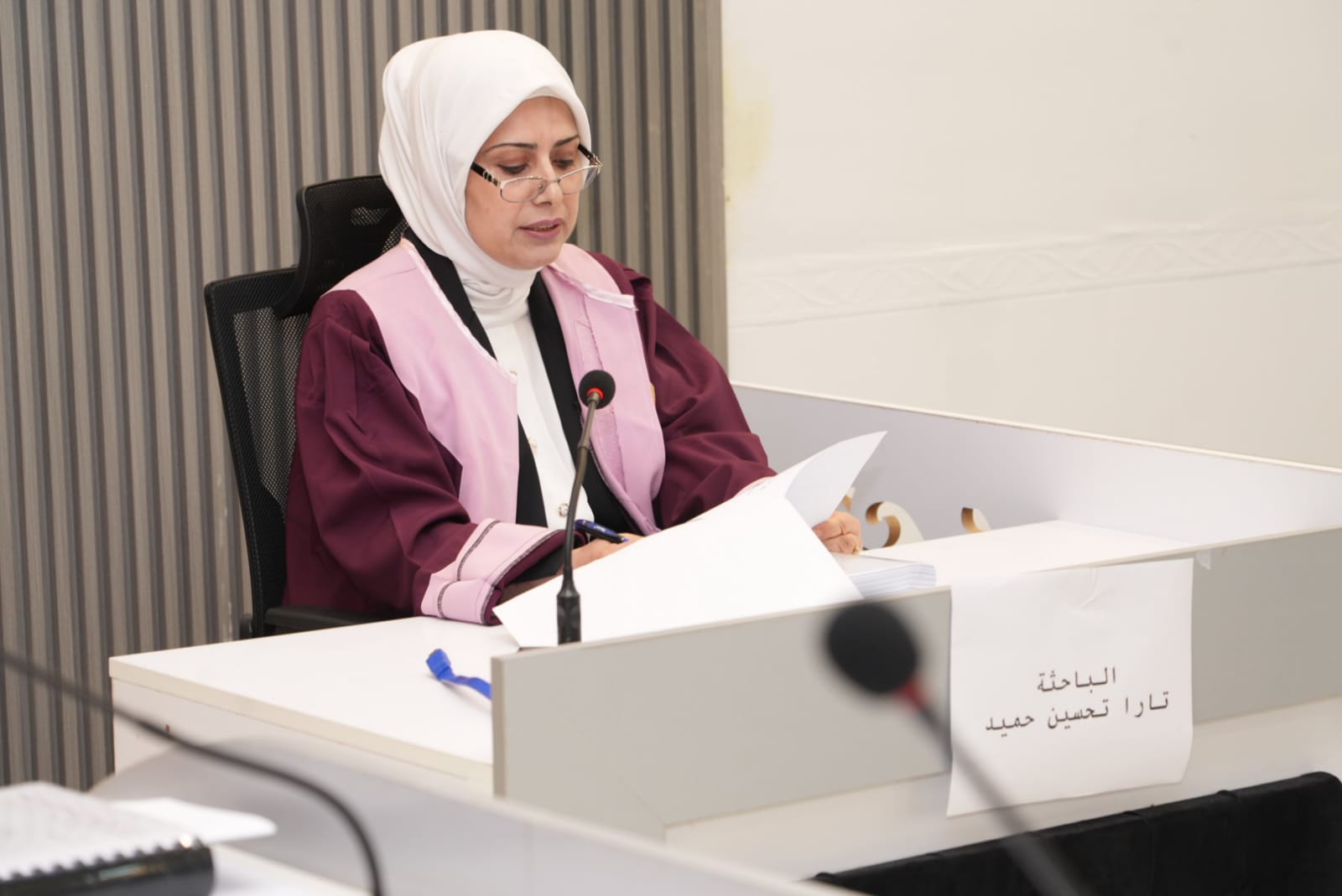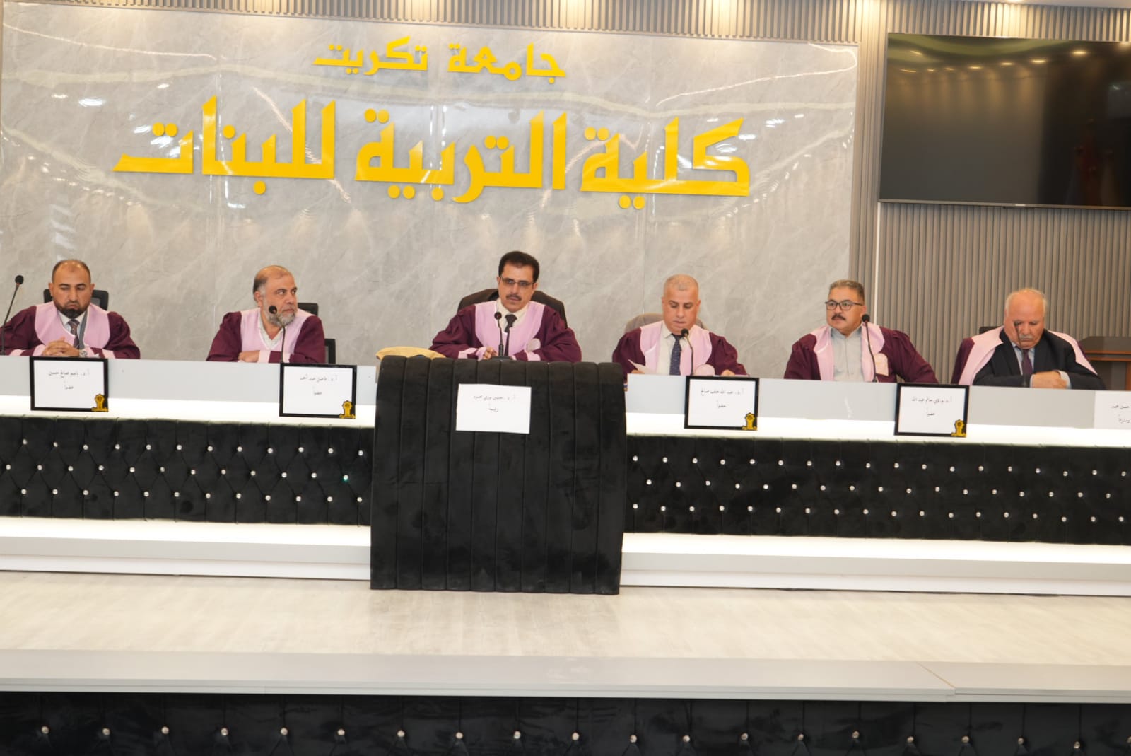 وقد بارك رئيس الجامعة جهود الطالبة المناقشة المبذولة في هذه الاطروحة واشاد بجهود الاستاذ المشرف والاساتذة في لجنة المناقشة واثنى على الدقة العلمية للملاحظات التي طرحتها اللجنة وصوابها وثمن المستوى العلمي الرصين لهذه المناقشات التي تصب هي ومثيلاتها في تحقيق الرصانة العلمية والاكاديمية التي تليق بجامعة تكريت