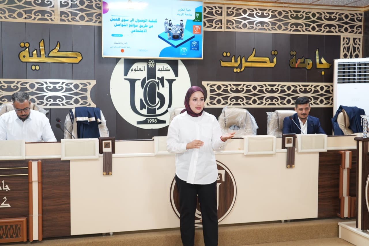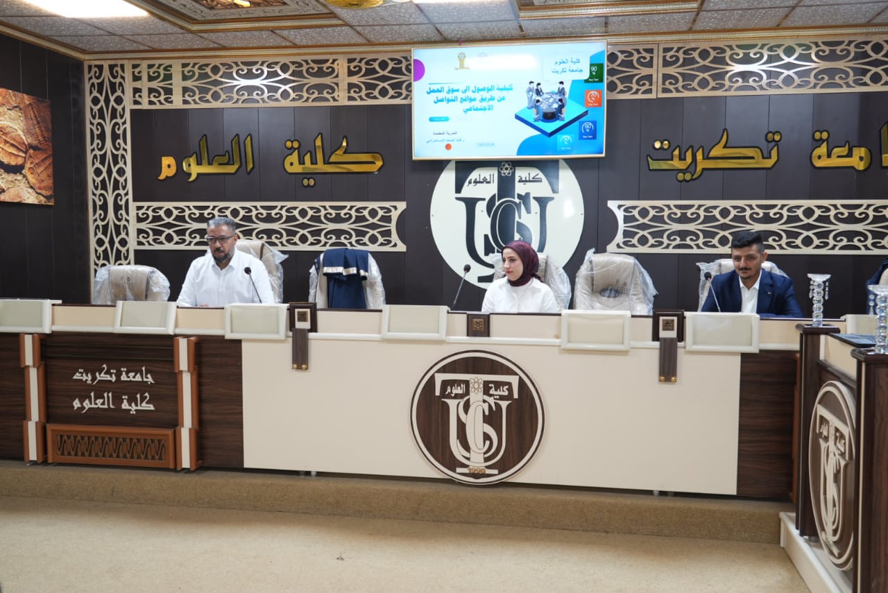 وفي سياق متصل حضر رئيس الجامعة ورشة عمل بعنوان (كيفية الوصول الى سوق العمل عن طريق مواقع التواصل الاجتماعي) عقدتها كلية العلوم بالتعاون مع شعبة التأهيل والتوظيف والمتابعة في رئاسة الجامعة استهدفت طلبة المرحلة الرابعة والخريجين القى محاورها السيد اسامة محمد عبدالله من رئاسة الجامعة والمدربة المعتمدة السيدة رغد أحمد السامرائي