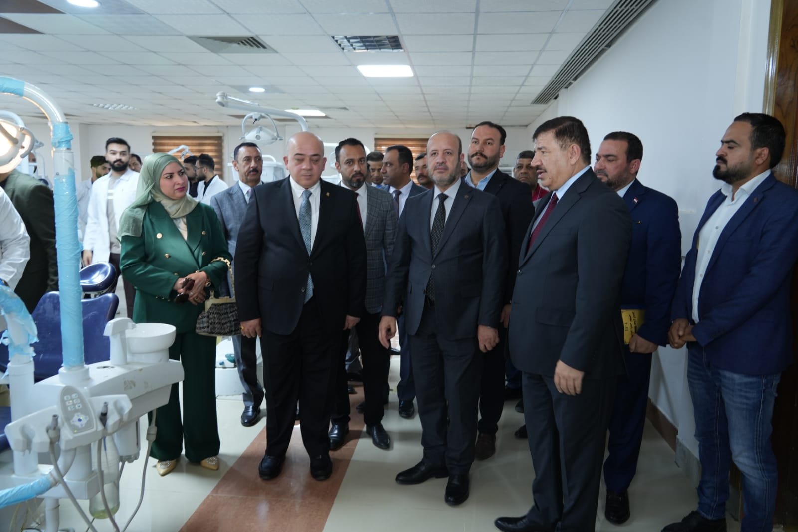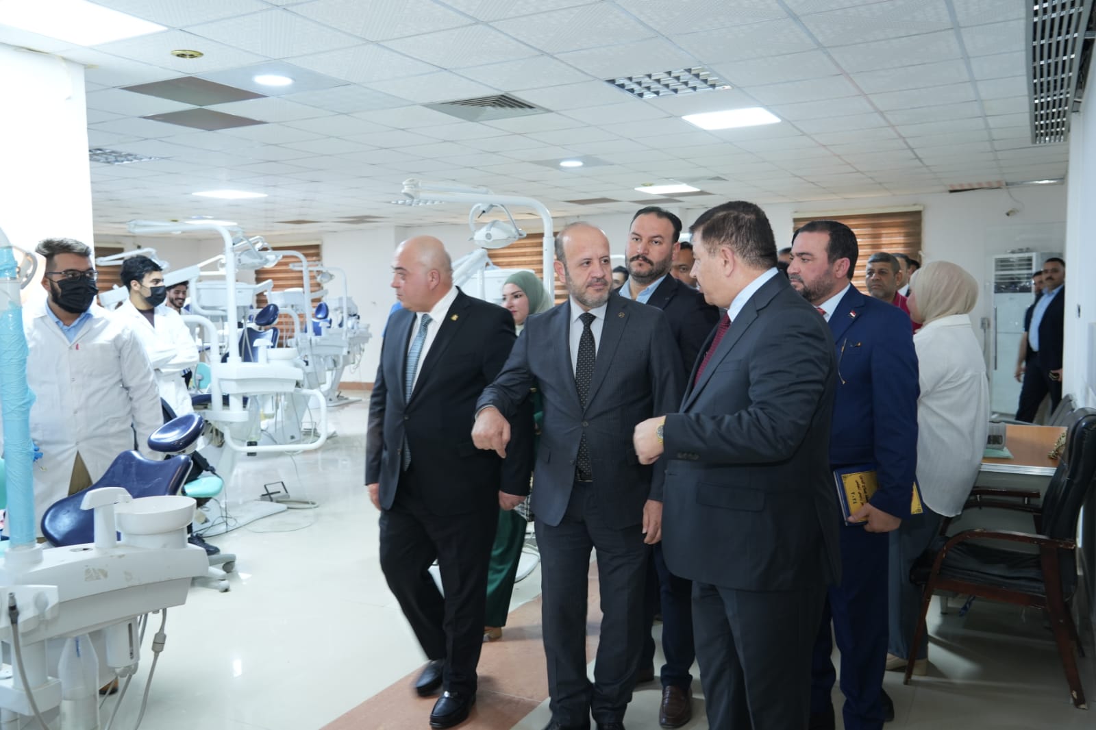 بعدها اصطحبهم رئيس الجامعة بجولة في اروقة الجامعة ضمت كليات طب الاسنان وبعض الكليات العلمية والانسانية ومختبراتها