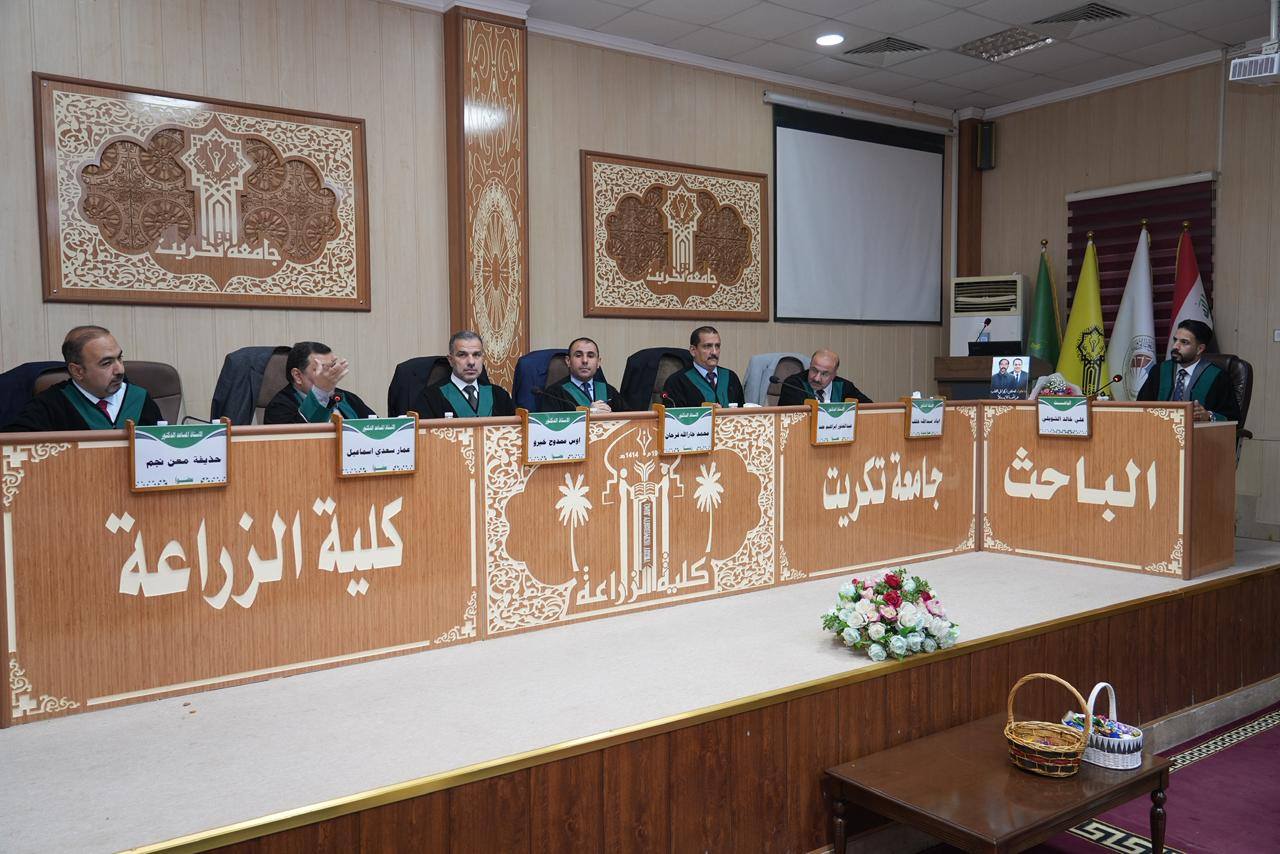 حضر رئيس جامعة تكريت الأستاذ الدكتور وعد محمود رؤوف، اليوم الاثنين، مناقشة أطروحة دكتوراه في كلية الزراعة للطالب علي خالد عليوي الشويلي، والموسومة: