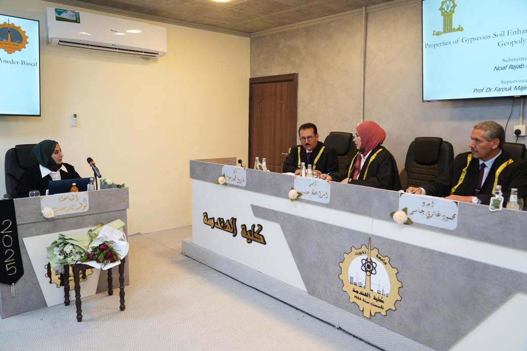 كما حضر سيادته في كلية الهندسة – قسم الهندسة المدنية مناقشة رسالة الماجستير للطالبة نوف رجب عبدالرحمن والموسومة: