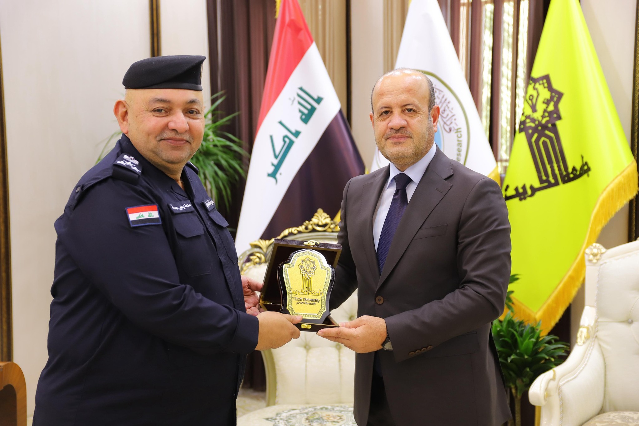 استقبل الأستاذ الدكتور وعد محمود رؤوف، رئيس جامعة تكريت، في مكتبه ، العميد محمد يحيى جمعة، مدير حماية شخصيات في محافظة صلاح الدين، في زيارة رسمية جاءت في إطار تعزيز التعاون والتواصل بين المؤسسات الأمنية والأكاديمية في المحافظة.