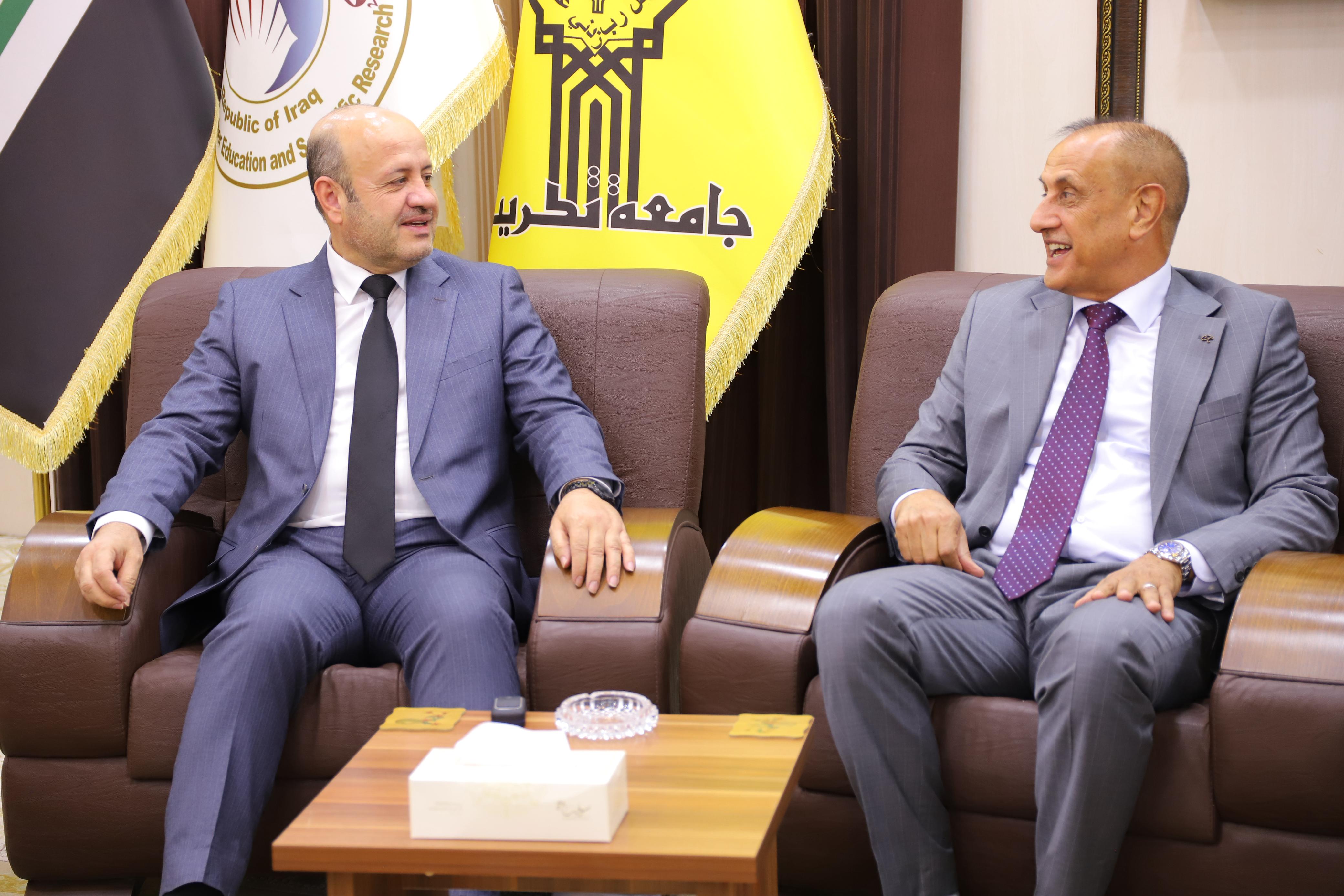وجرى خلال اللقاء بحث سبل تعزيز التعاون العلمي والأكاديمي بين الجامعتين، لاسيما في ضوء مذكرة التفاهم الموقعة بين الجانبين في وقت سابق، والتي تهدف إلى تبادل الخبرات وتطوير البرامج الأكاديمية بما يسهم في الارتقاء بمستوى التعليم العالي.