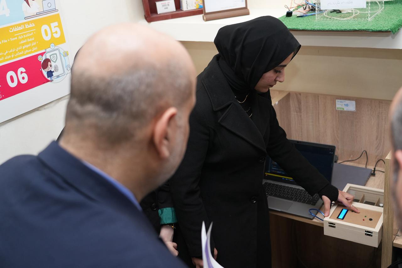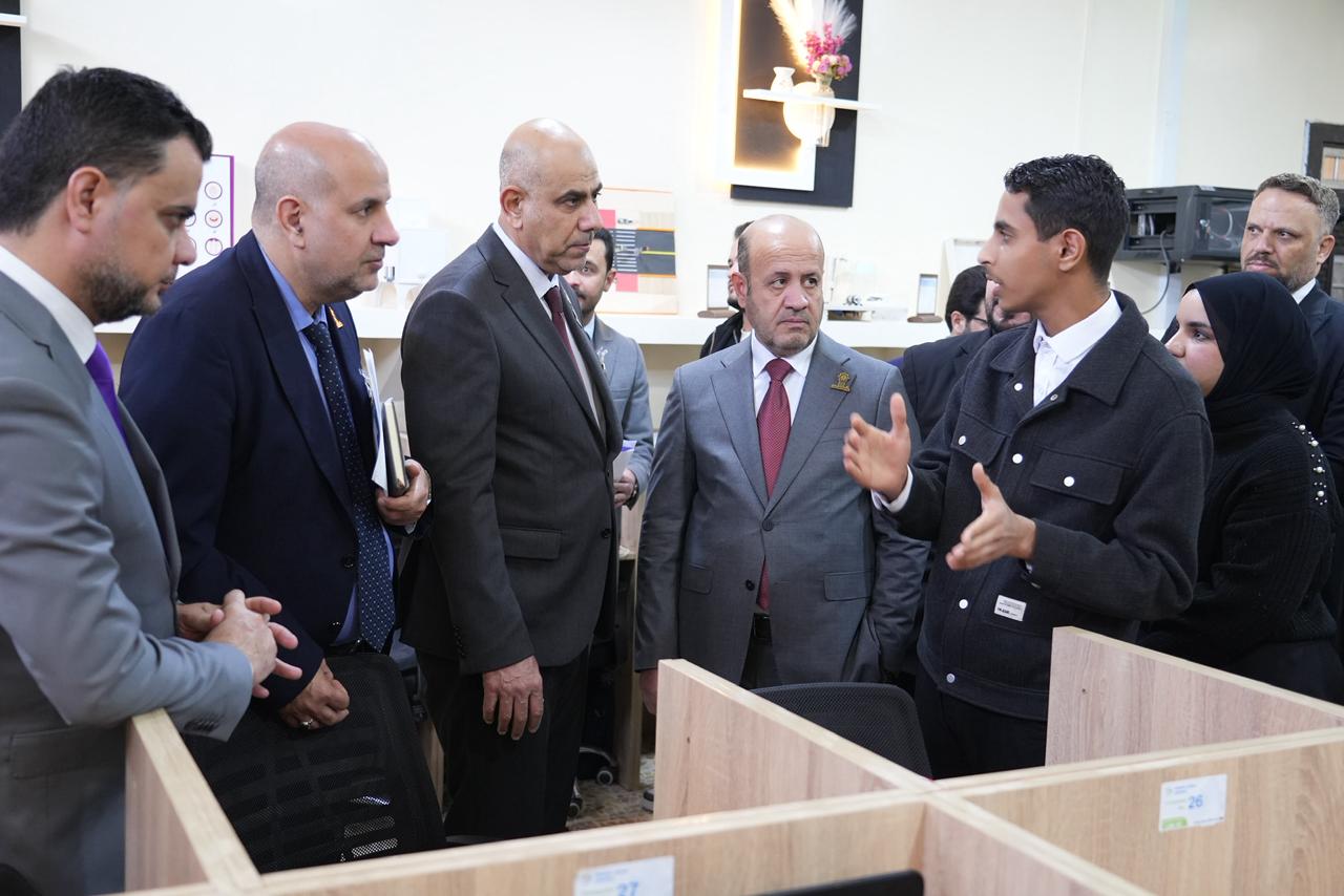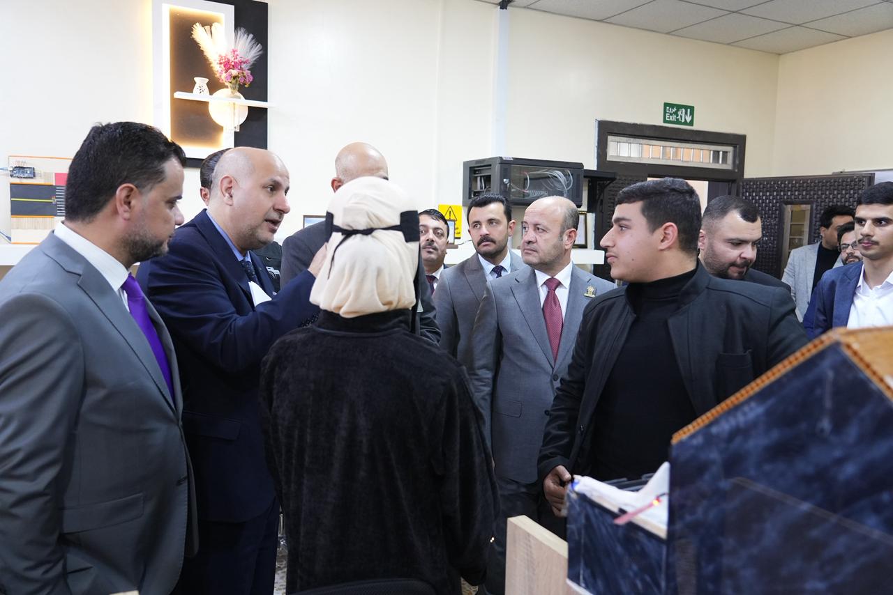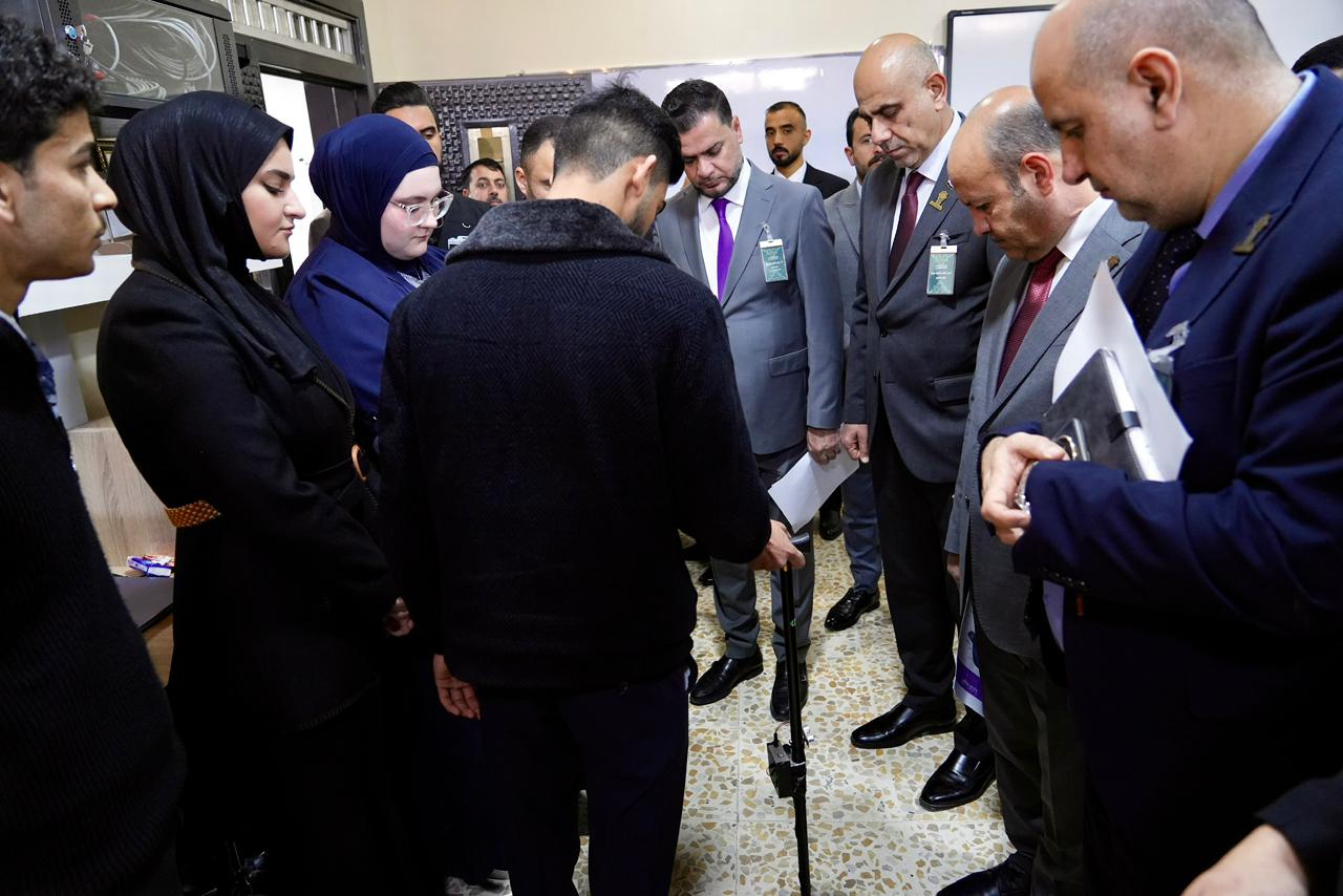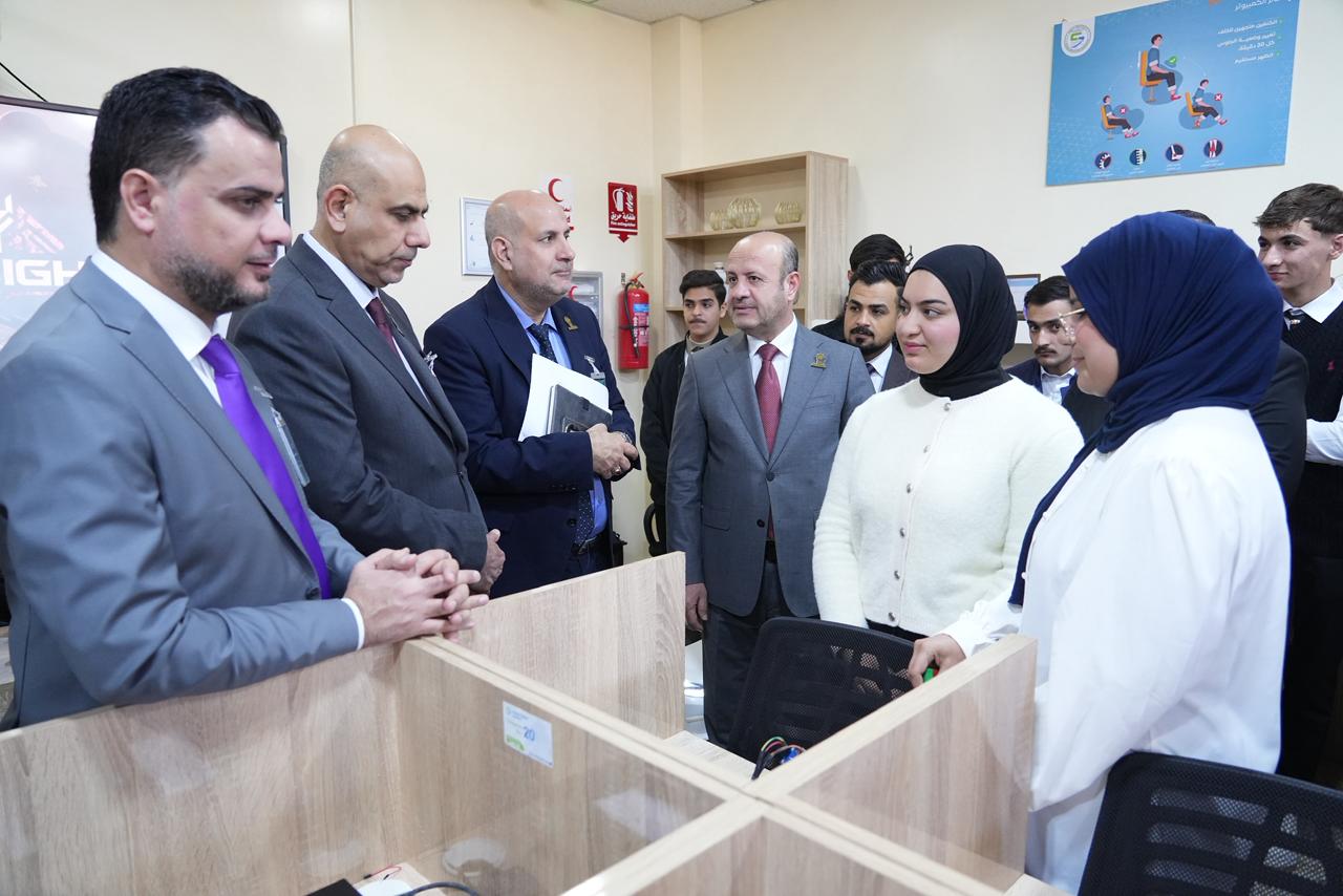 واطّلع السيد رئيس الجامعة والوفد المرافق له على الأجهزة الحديثة والتقنيات المتوفرة داخل المختبر، كما استمعوا إلى شرحٍ مفصّل عن المشاريع والابتكارات التي أنجزها طلبة المرحلة الأولى، والتي عكست مستوى الإبداع والمهارات العملية التي يتمتع بها طلبة الكلية، ولاسيما في مجالات الذكاء الاصطناعي والتطبيقات الذكية.