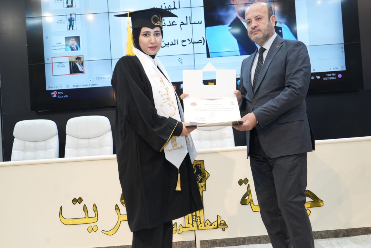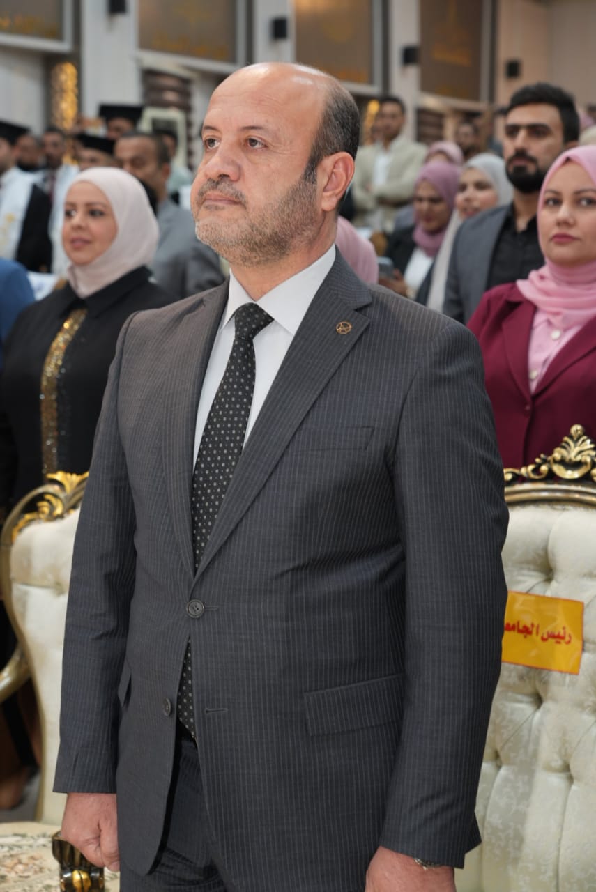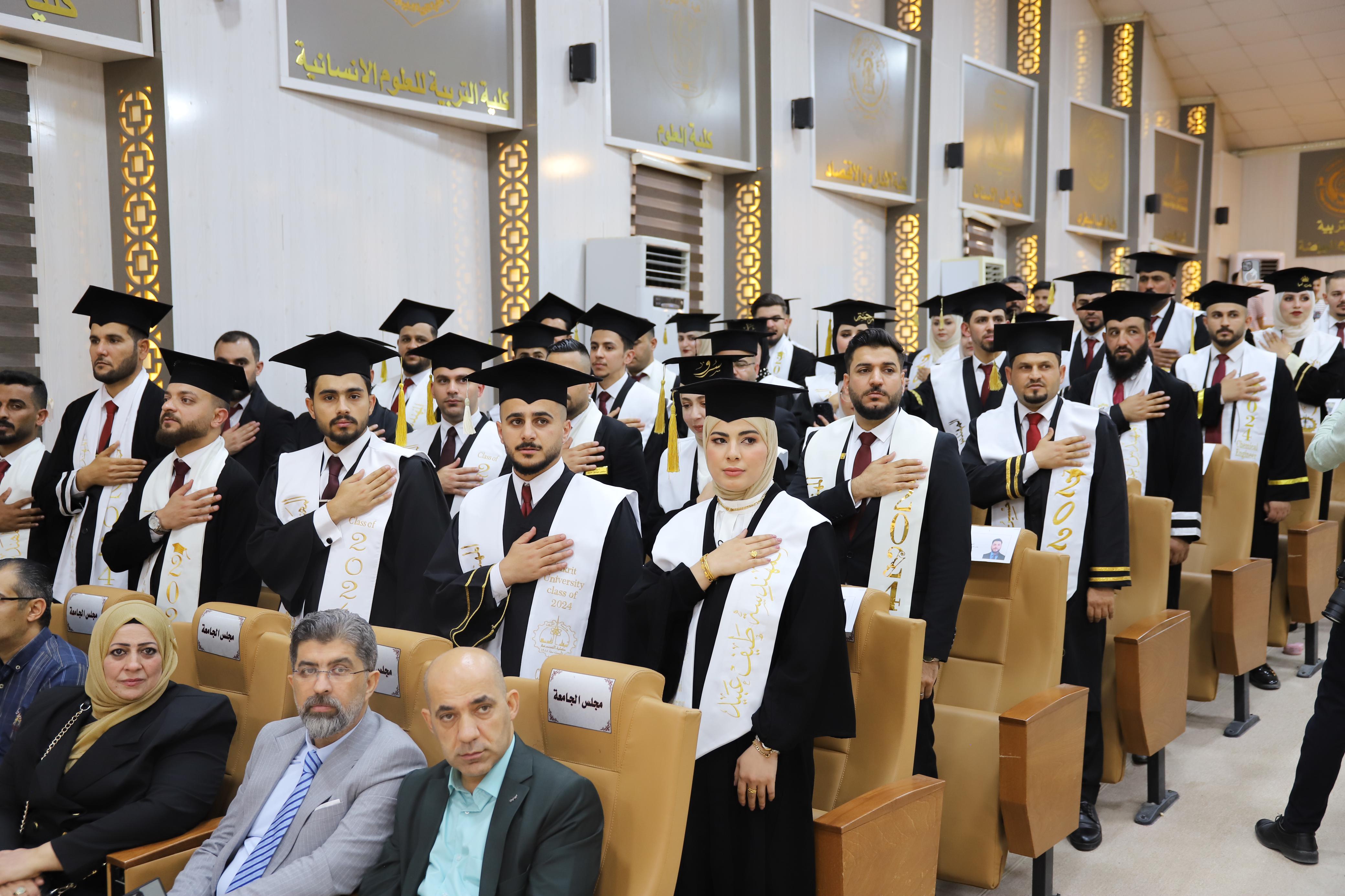 ثم كلمة ممثل الطلبة الخريجين والتي اثنى فيها على جهود الكلية والجامعة والاساتذة وما قدموه من دعم وتفاني والذي خلق جيل مثقف وقادر عل حمل الرسالة وتحقيق الغاية في خدمة المجتمع.