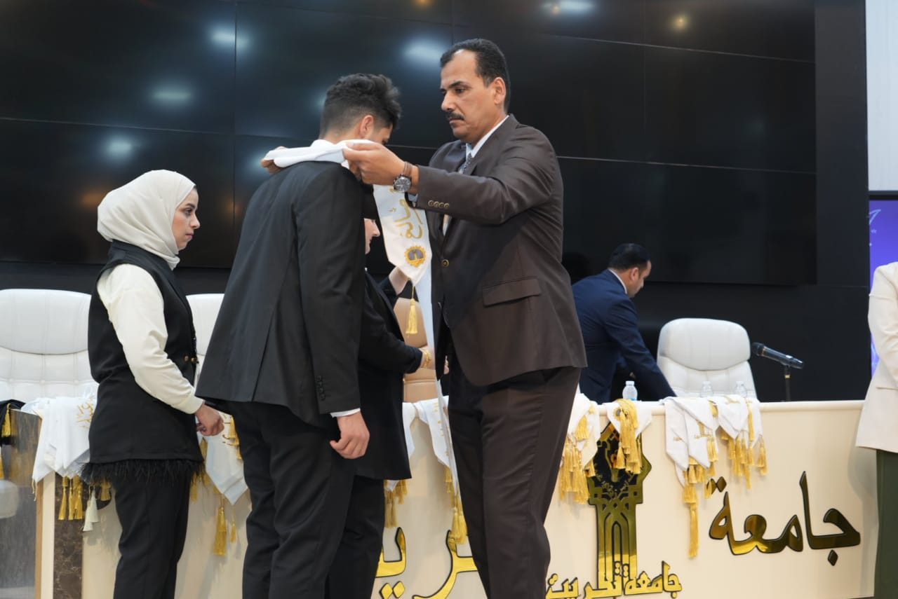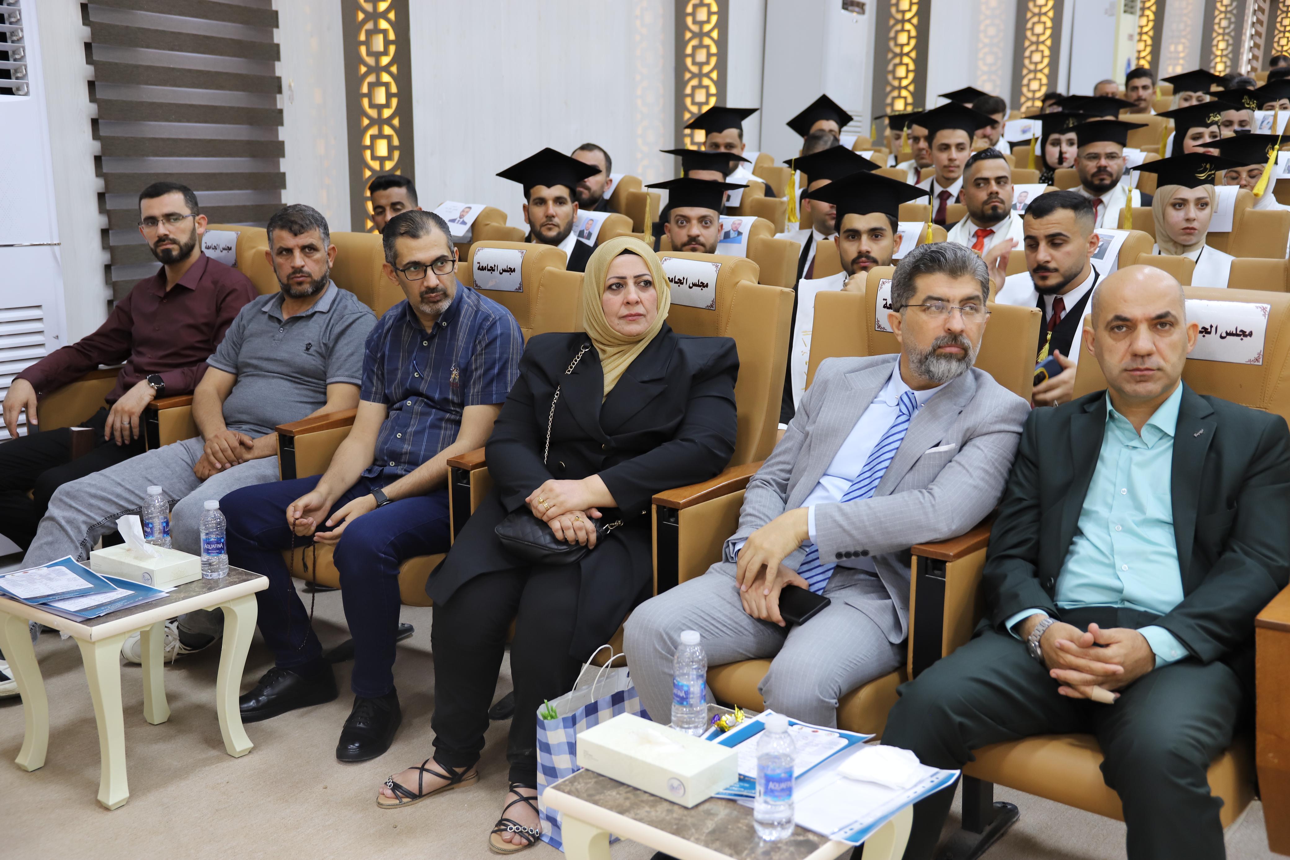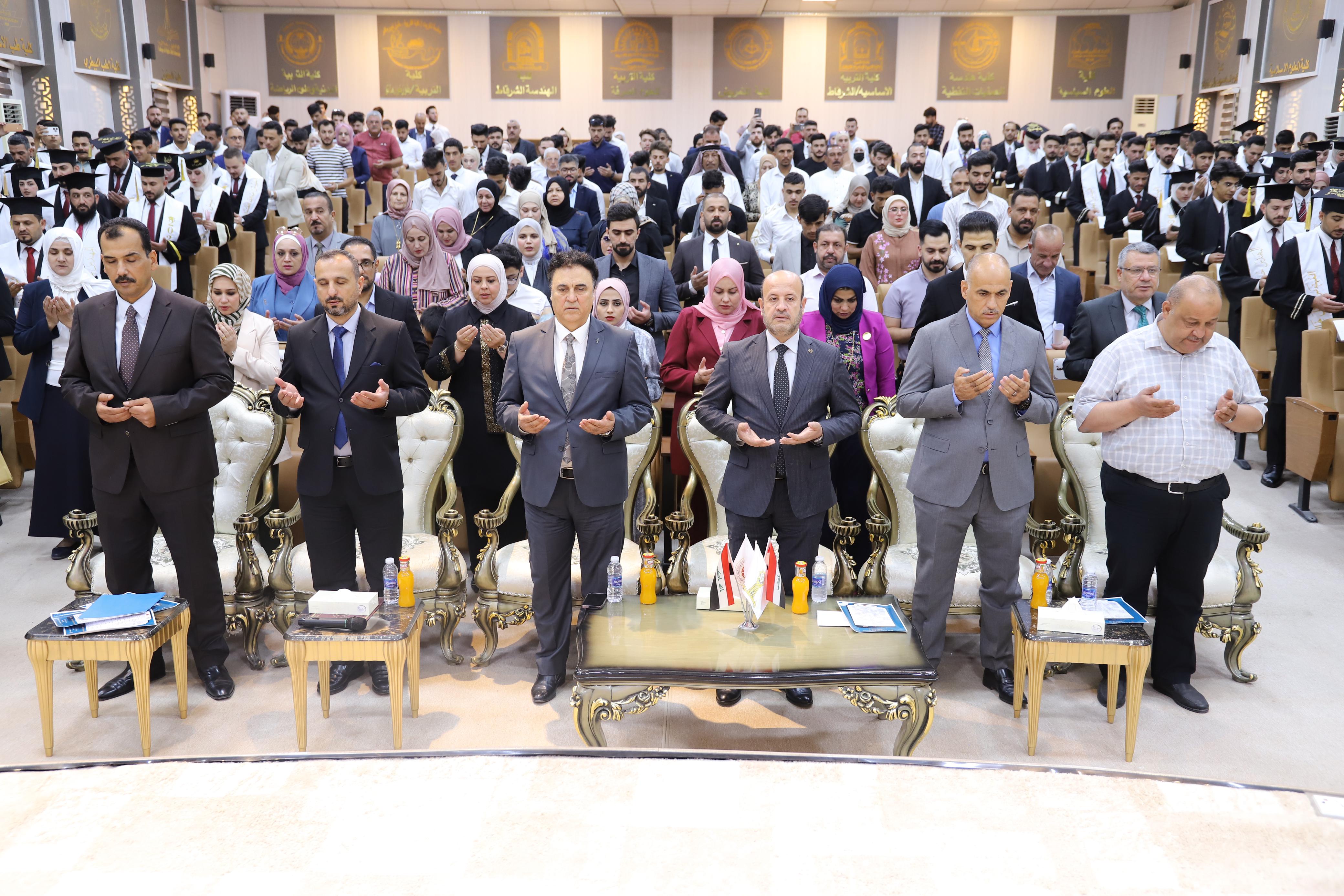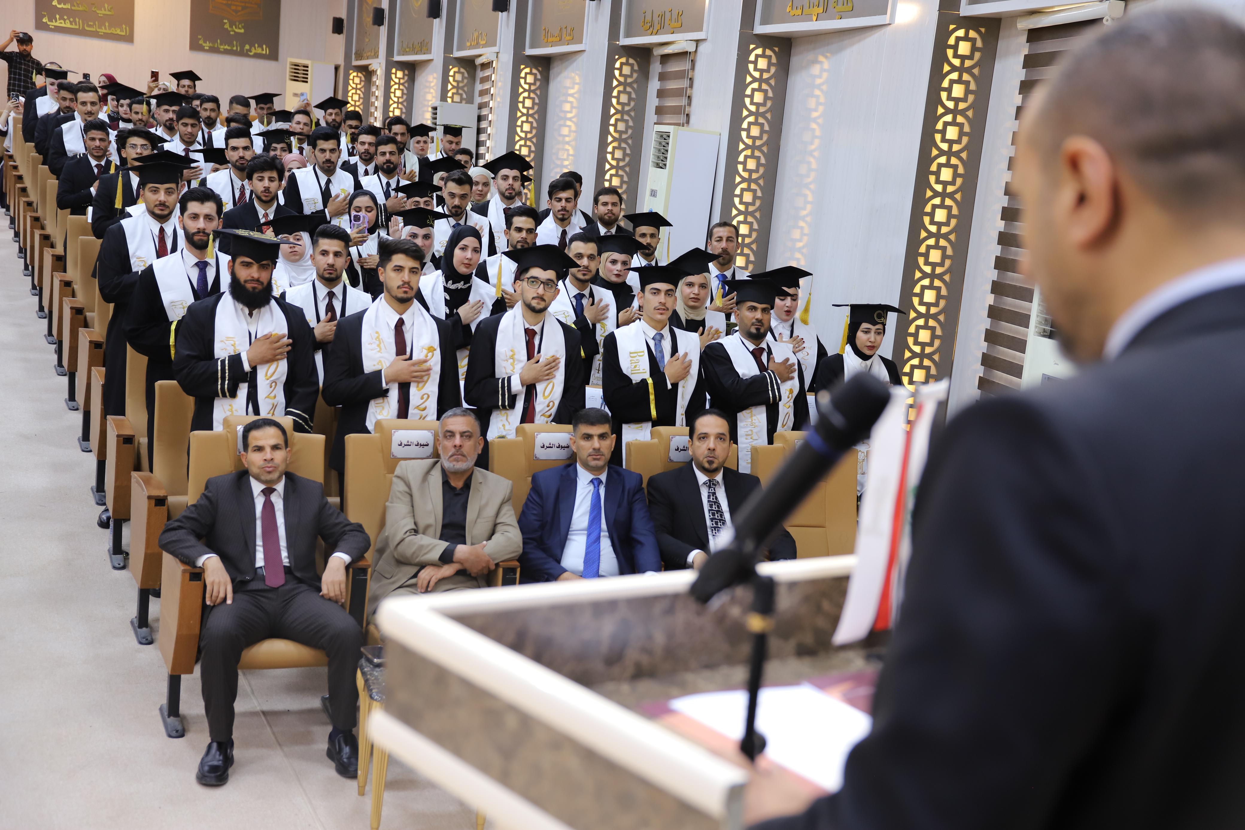 وعلى صعيدٍ متصل اقيم حفل تخرج لطلبة المرحلة الرابعة افتتح فعاليات الحفل بتلاوة آي من الذكر الحكيم تلاه عزف النشيد الوطني تلاها كلمة عميد الكلية الاستاذ المساعد الدكتور خالد حمود مضحى تحدث من خلالها عن ما تبذله الكلية من جهود استثنائية لرفد الجامعة والمجتمع بخريجين في تخصص الهندسة بجميع اقسامها واثنى على الجهد المبذول من قبل ابنائه الطلبة وتعاونهم الكبير مع اساتذتهم والتزامهم بكافة التعليمات. بعدها رسالة ترحيب من قبل رئيس القسم ونظرة عامة على اللقاء واهمية من قبل الاستاذ الدكتوره صبا عدنان رئيس اللجنة العلمية في القسم ،