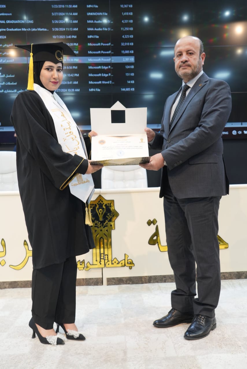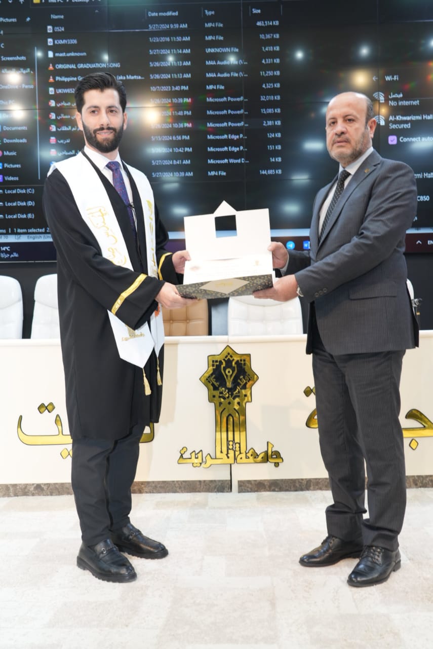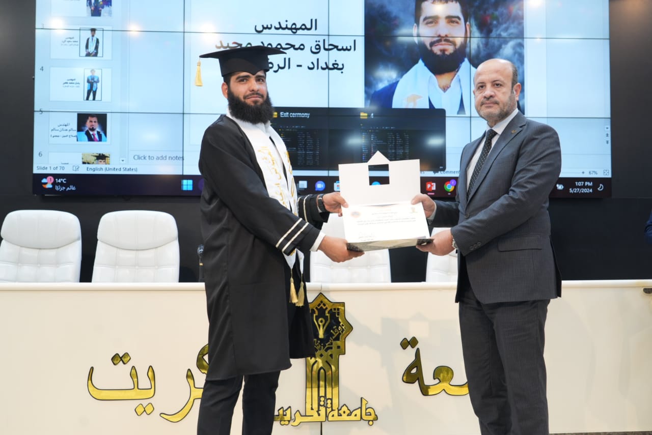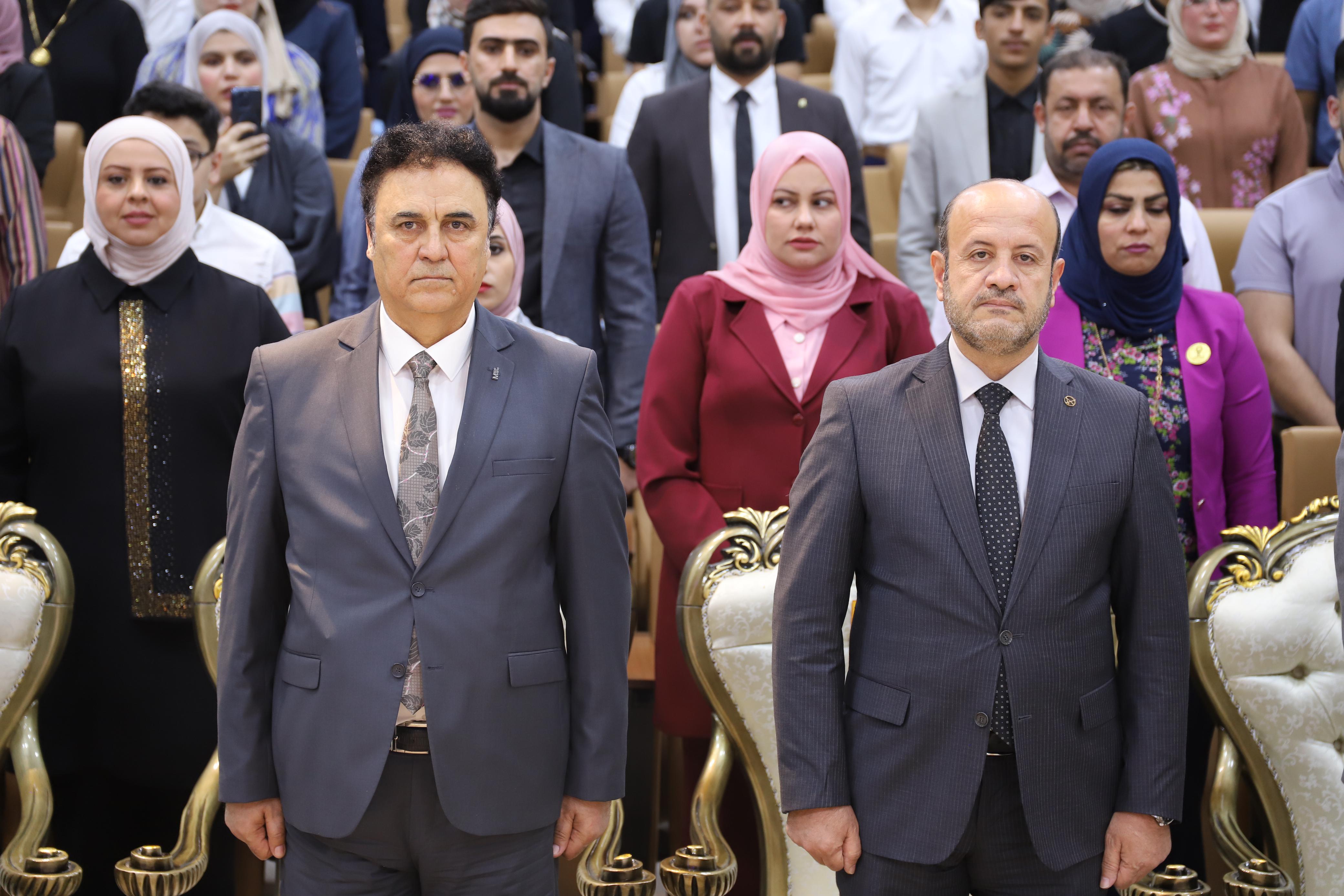 وعلى صعيدٍ متصل اقيم حفل تخرج لطلبة المرحلة الرابعة افتتح فعاليات الحفل بتلاوة آي من الذكر الحكيم تلاه عزف النشيد الوطني تلاها كلمة عميد الكلية الاستاذ المساعد الدكتور خالد حمود مضحى تحدث من خلالها عن ما تبذله الكلية من جهود استثنائية لرفد الجامعة والمجتمع بخريجين في تخصص الهندسة بجميع اقسامها واثنى على الجهد المبذول من قبل ابنائه الطلبة وتعاونهم الكبير مع اساتذتهم والتزامهم بكافة التعليمات. بعدها رسالة ترحيب من قبل رئيس القسم ونظرة عامة على اللقاء واهمية من قبل الاستاذ الدكتوره صبا عدنان رئيس اللجنة العلمية في القسم ،