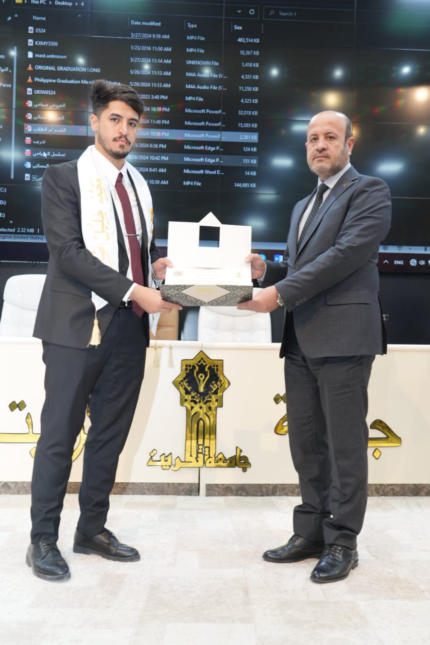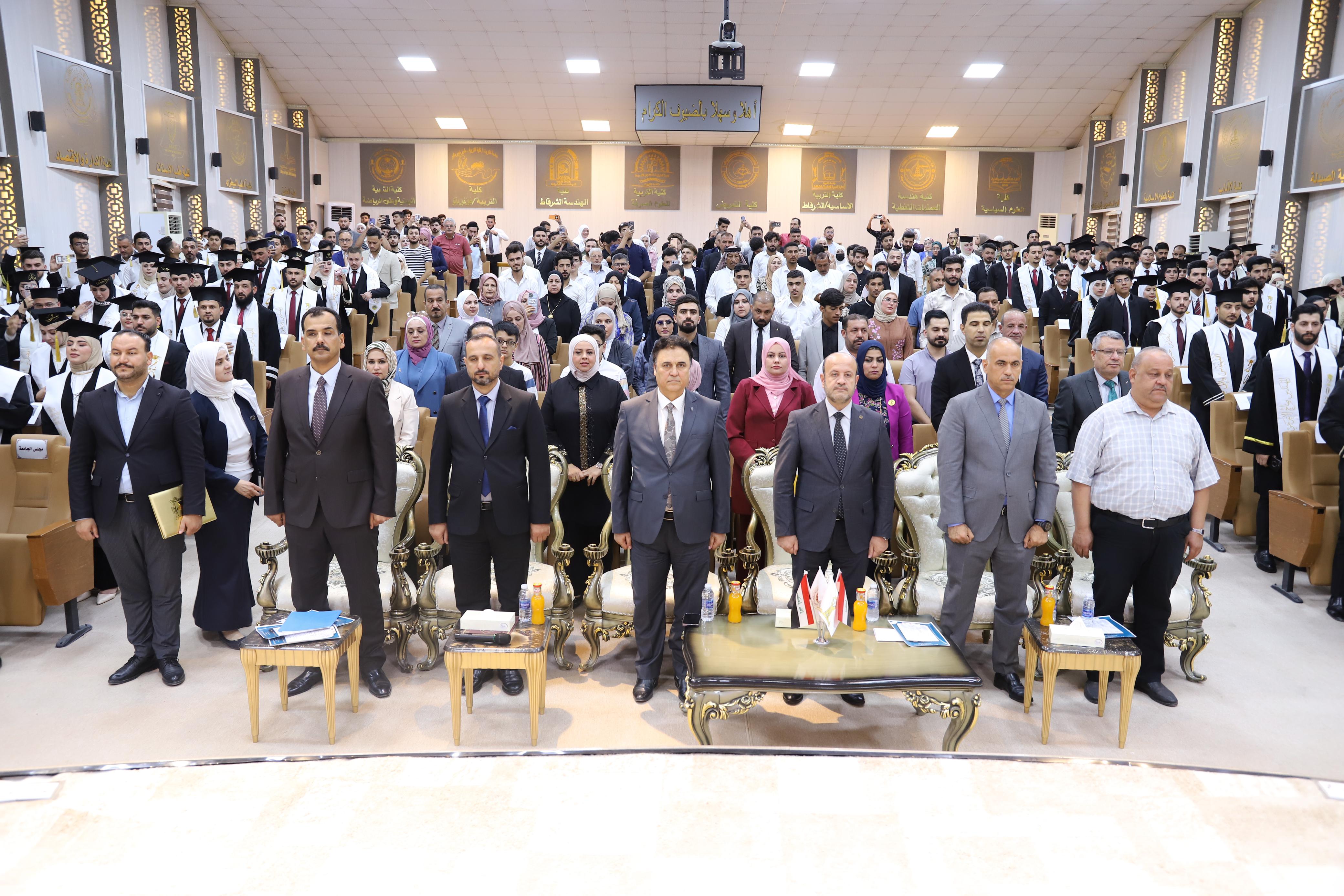 وفي ختام فعاليات الحفل تم التقاط صورة جماعية وتوزيع الدروع والشهادات التقديرية للطلبة الاوائل على الكلية تقديرية تثميناً لاجتهادهم ومثابرتهم.