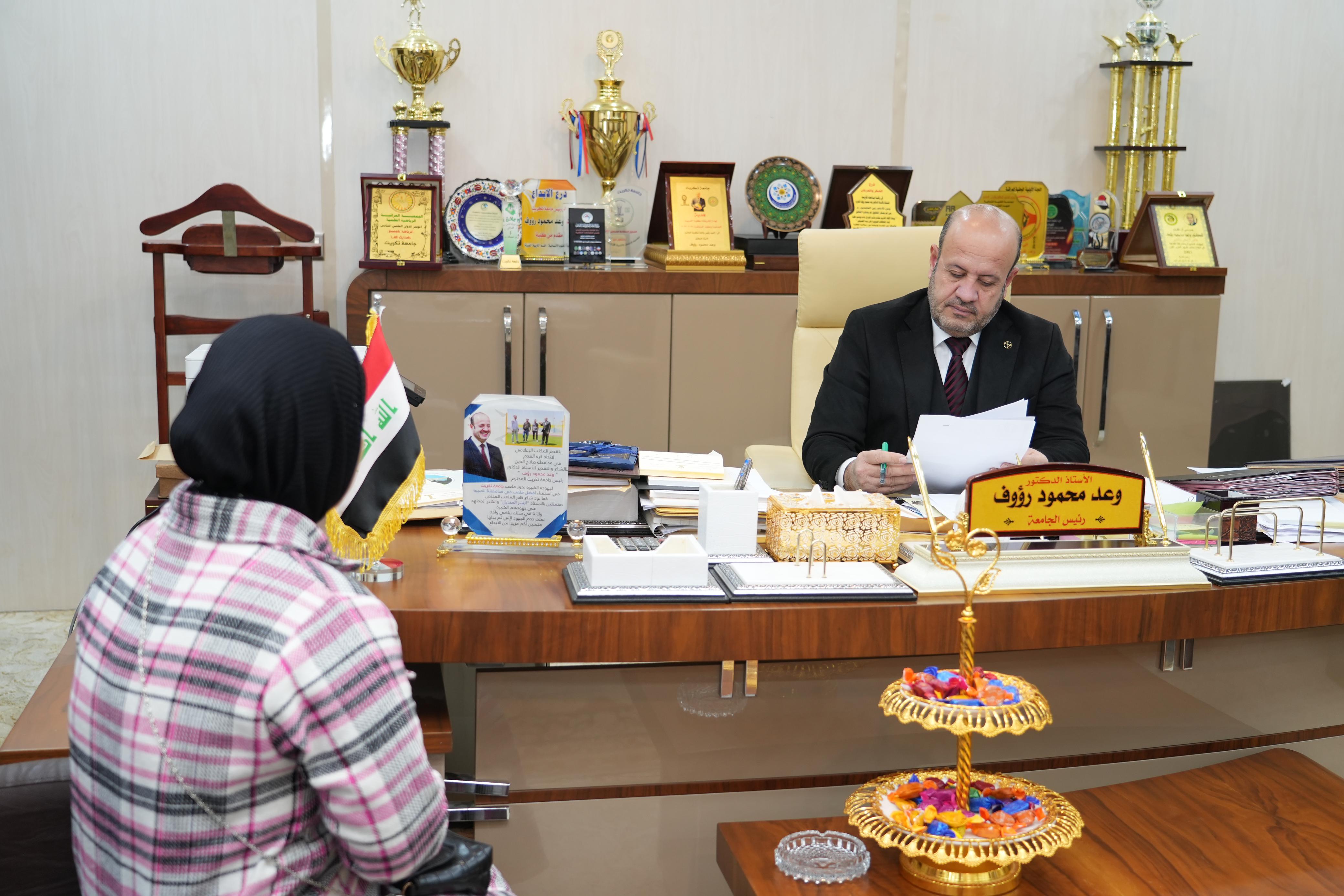 رئيس جامعة تكريت يواصل مقابلاته الاسبوعية مع طلبة الجامعة والمواطنين للنظر في طلباتهم