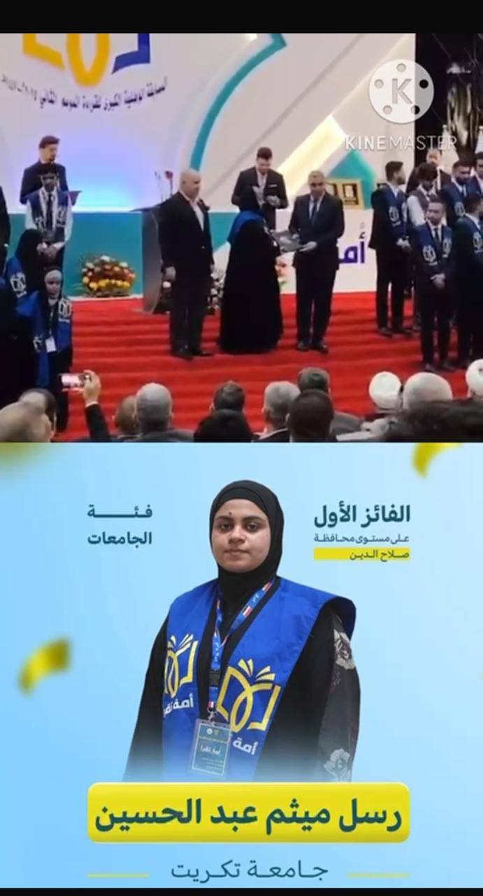 اذ حققت الطالبة رسل ميثم عبد الحسين من كلية التربية للبنات – جامعة تكريت إنجازاً متميزاً بحصولها على المركز الأول عن فئة الجامعات على مستوى محافظة صلاح الدين، مؤكدةً جدارتها العلمية ومكانة الجامعة في ميدان التنافس الأكاديمي والثقافي.
